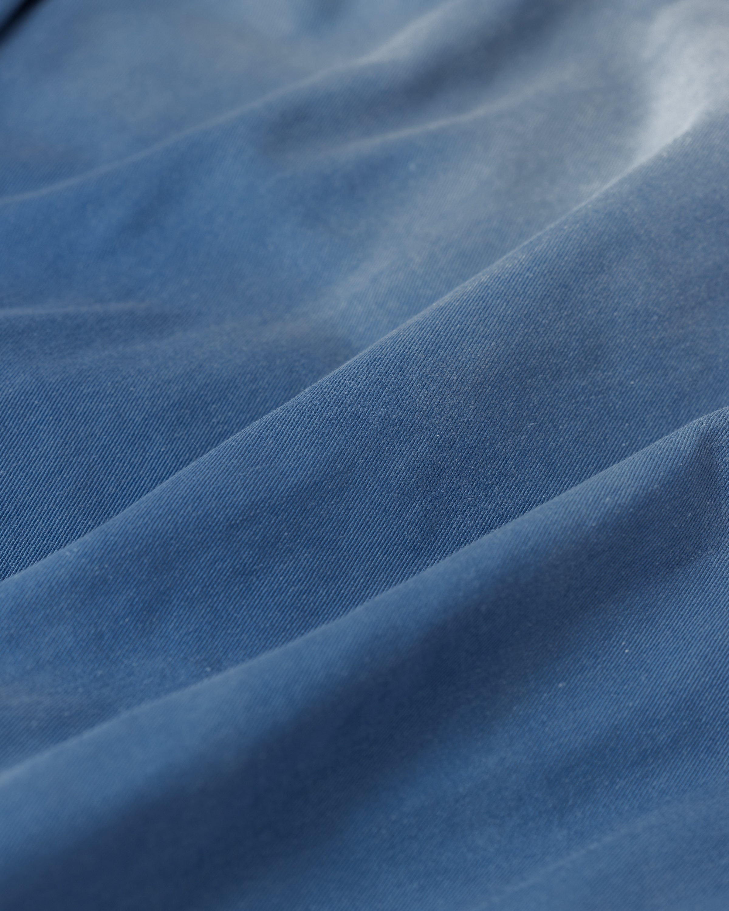 水や薬品の使用量を軽減させながら生地の凹凸部分のアタリを強調させ、同時に脱色させる特殊加工です。