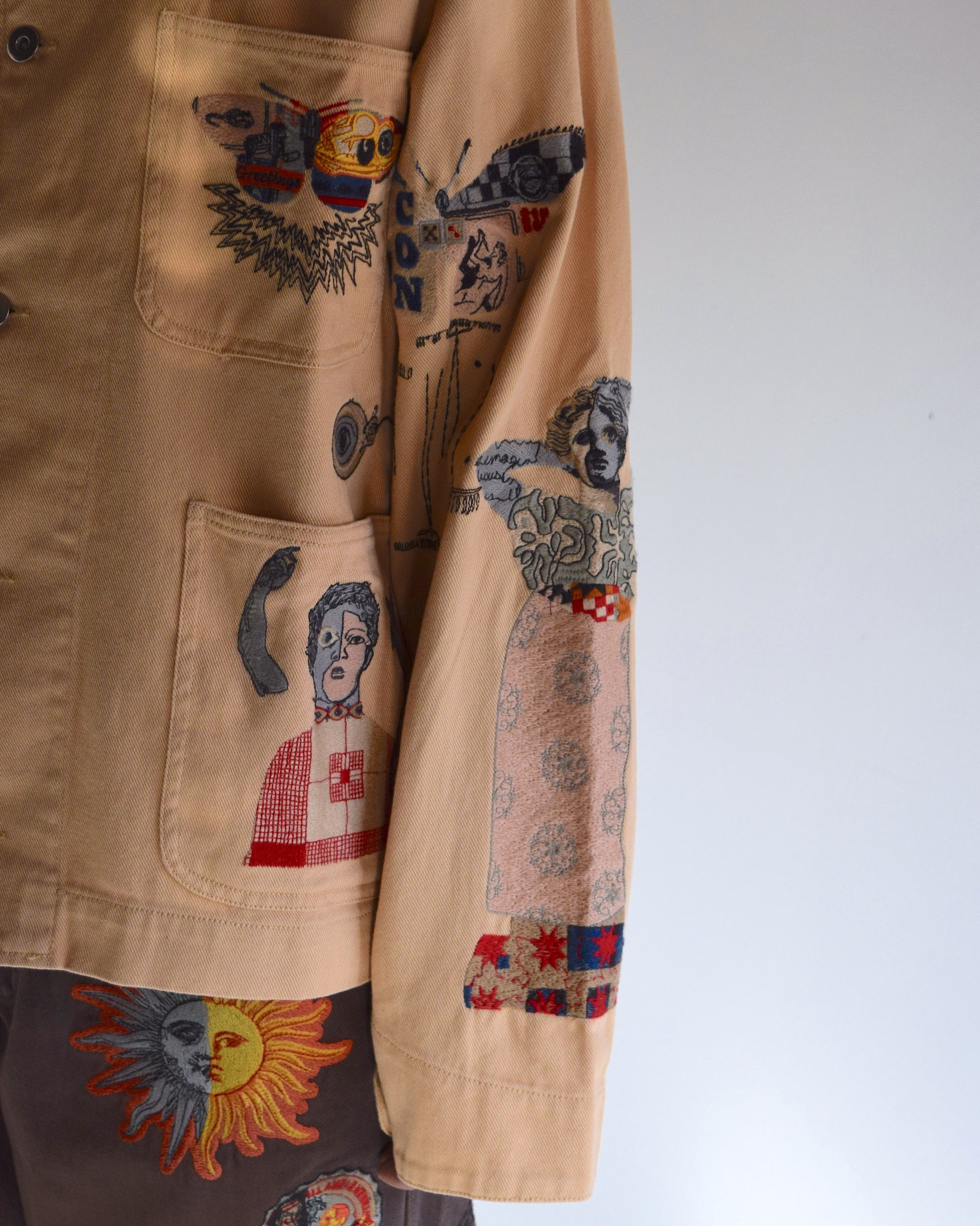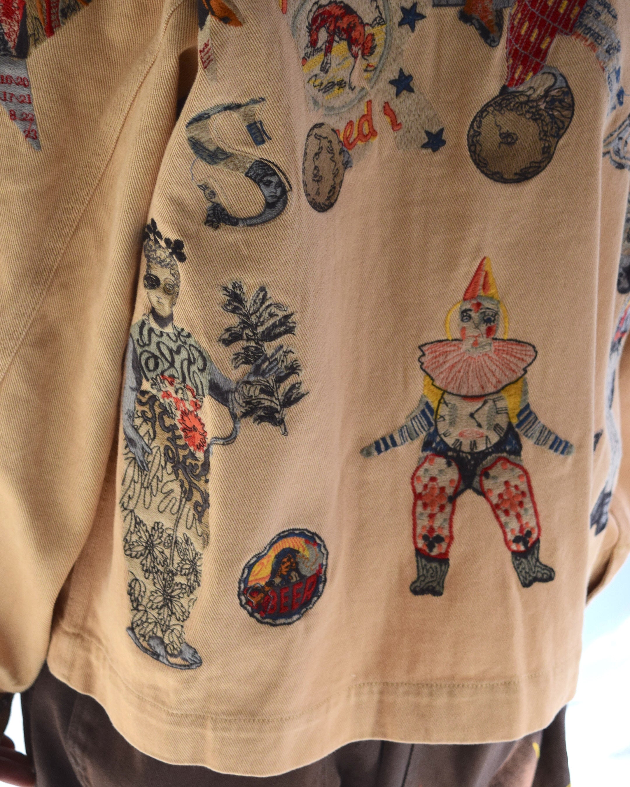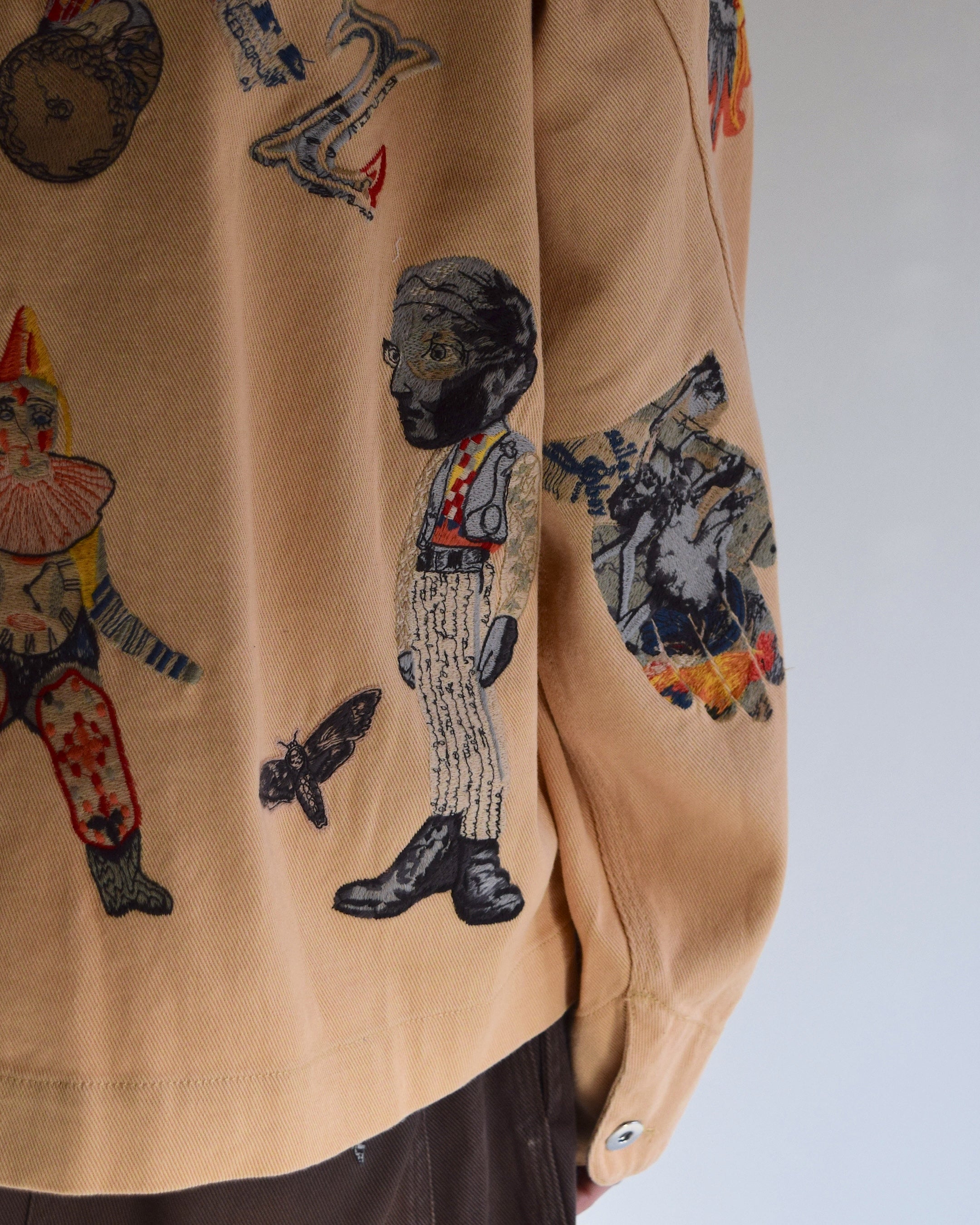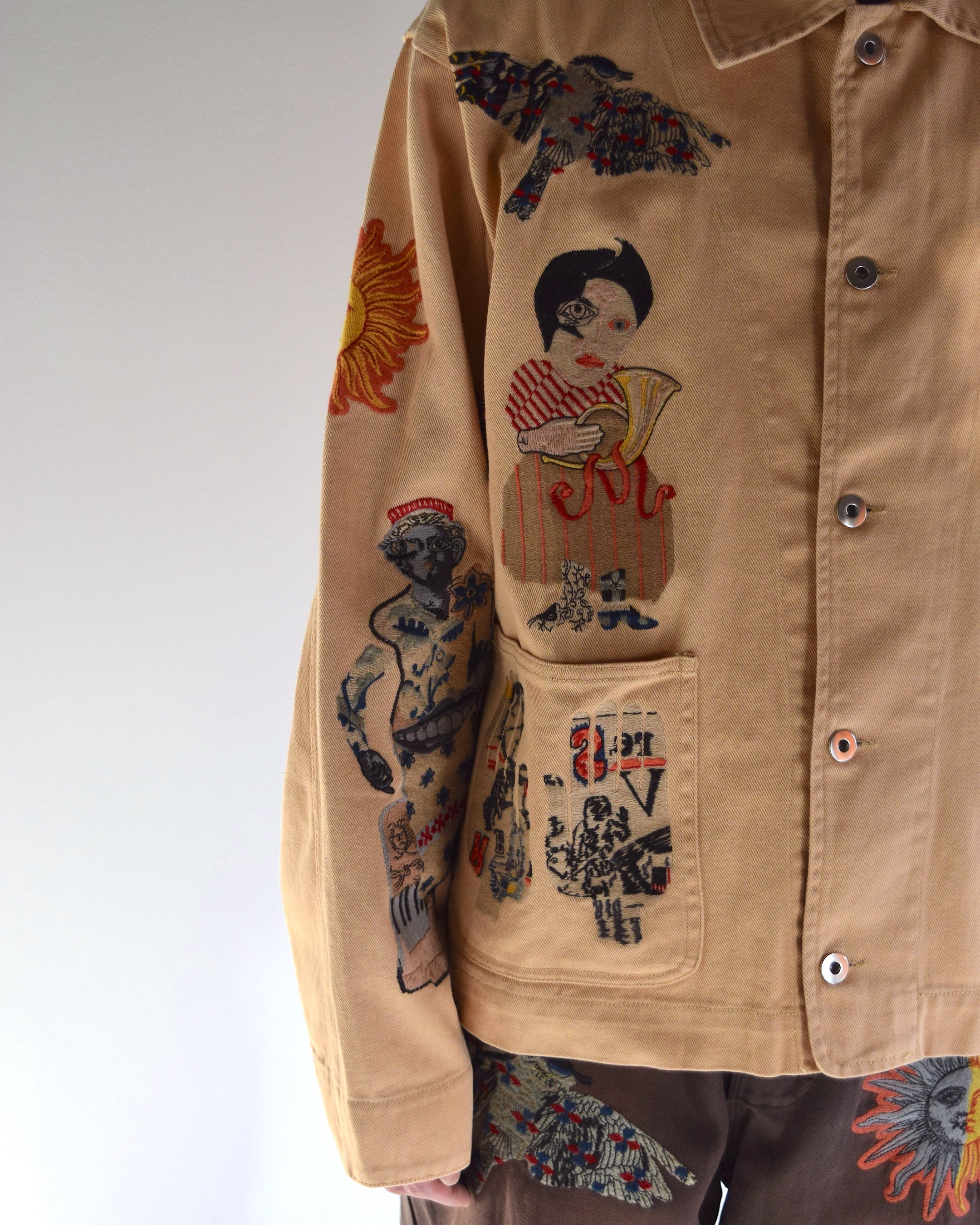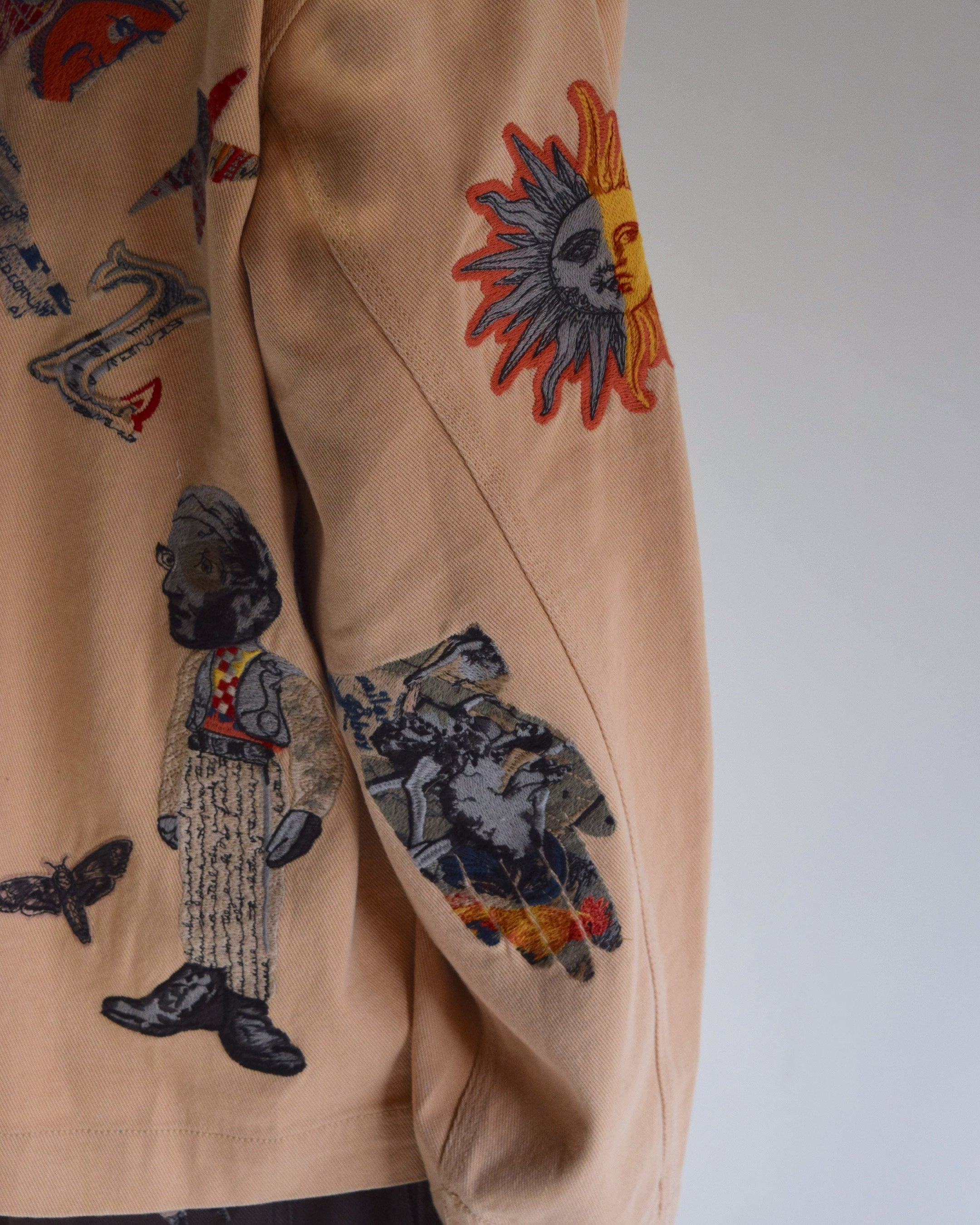 20世紀初頭の芸術運動であるダダからインスピレーションを得た刺繍が施されたショアジャケット。