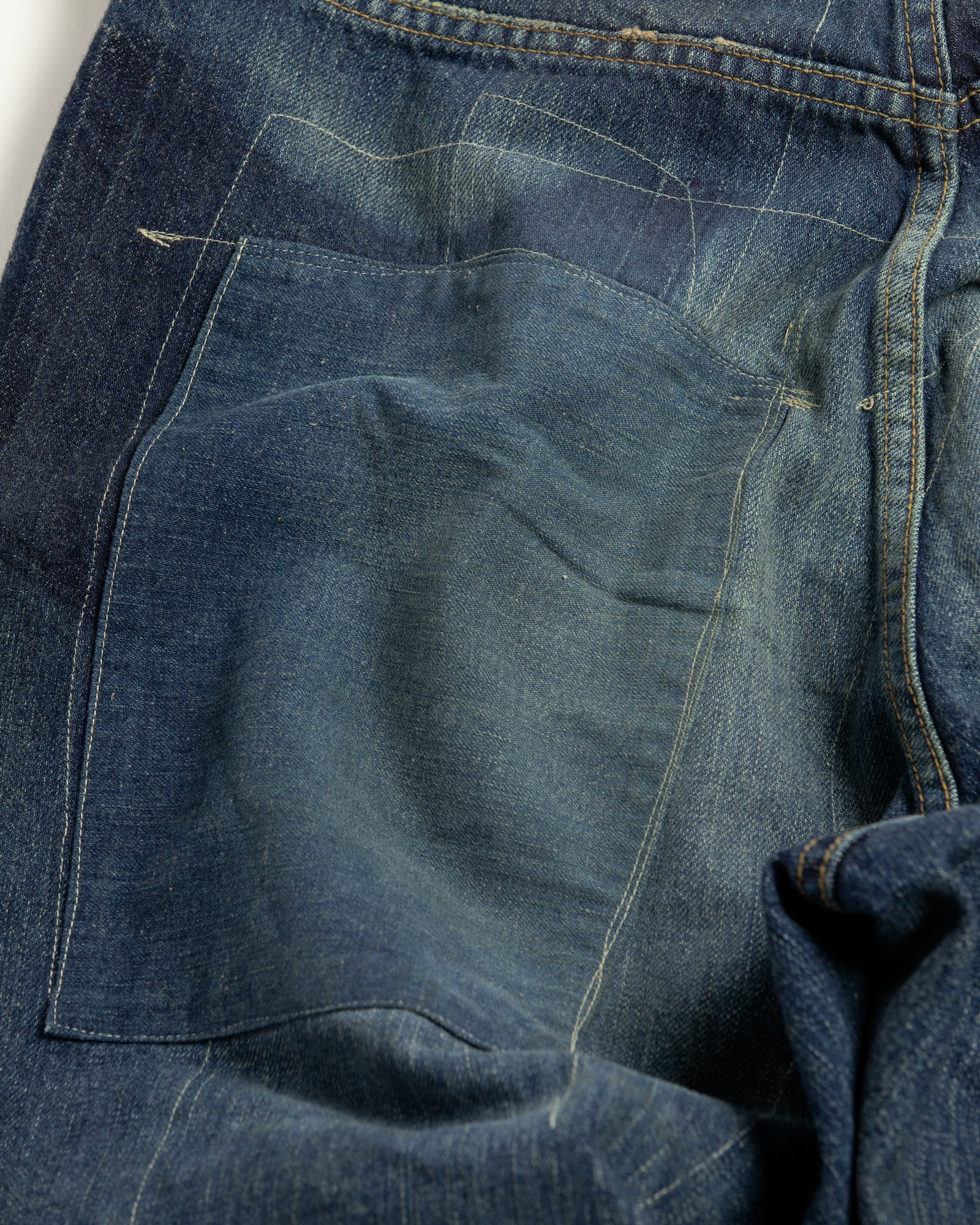 デニム生地のあて布に関しては、生地の段階で加工するなど細部まで手の込んだ1着です。