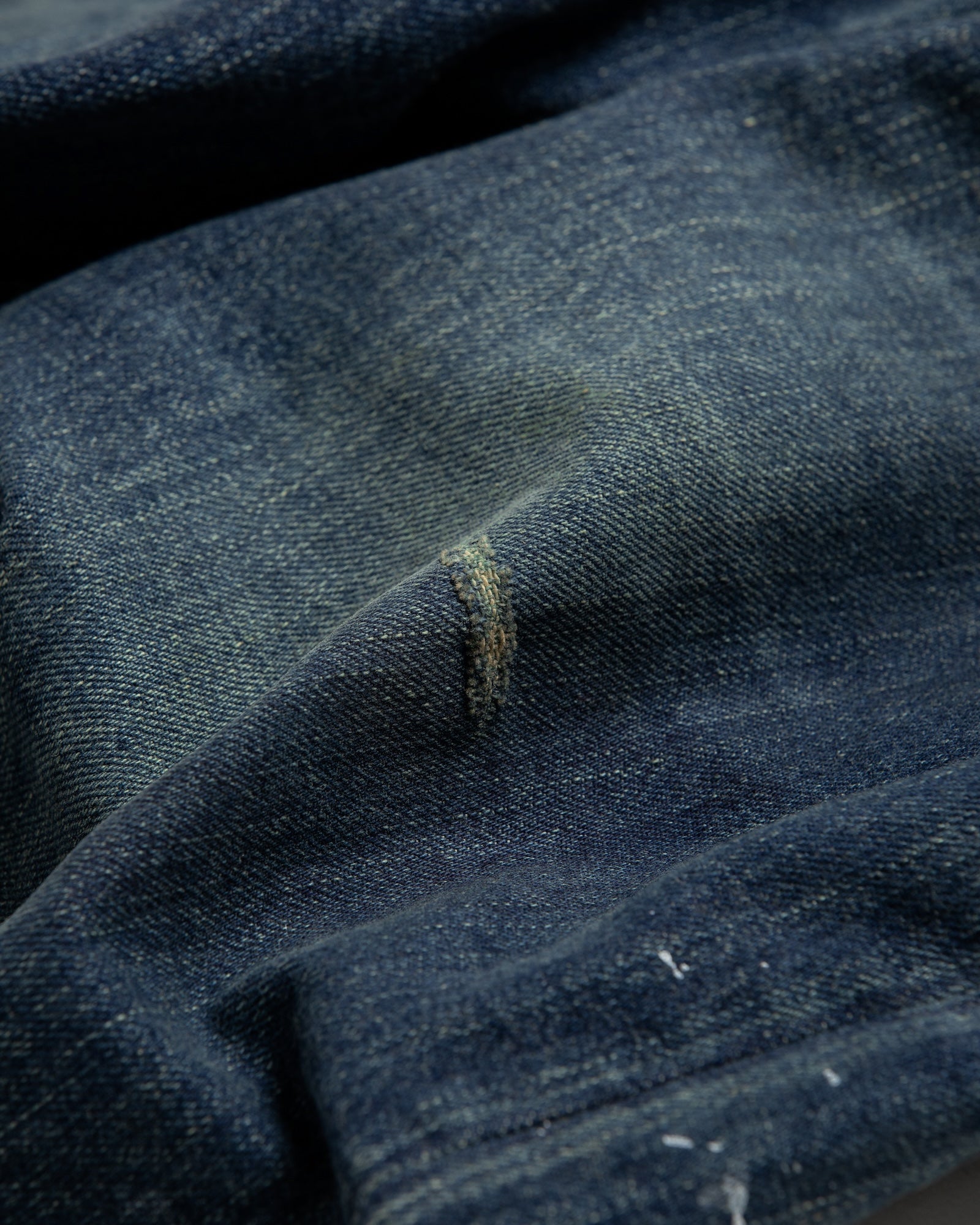 生地のタテ糸には、インディゴロープ染色した程よいムラ形状の中白糸を使用。