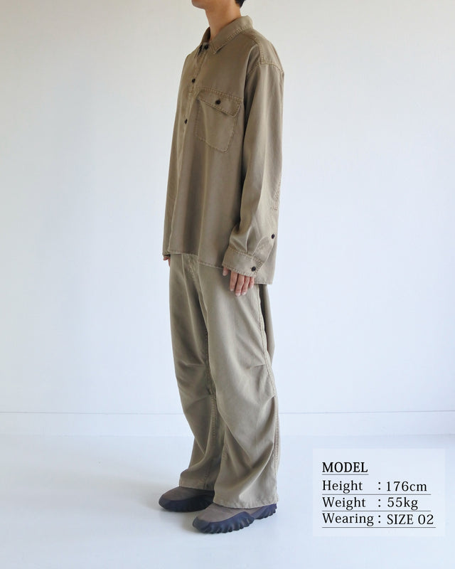 While polyester is typically difficult to dye, we have applied a specialized pigment-dyeing process to achieve a natural, deep-toned expression.