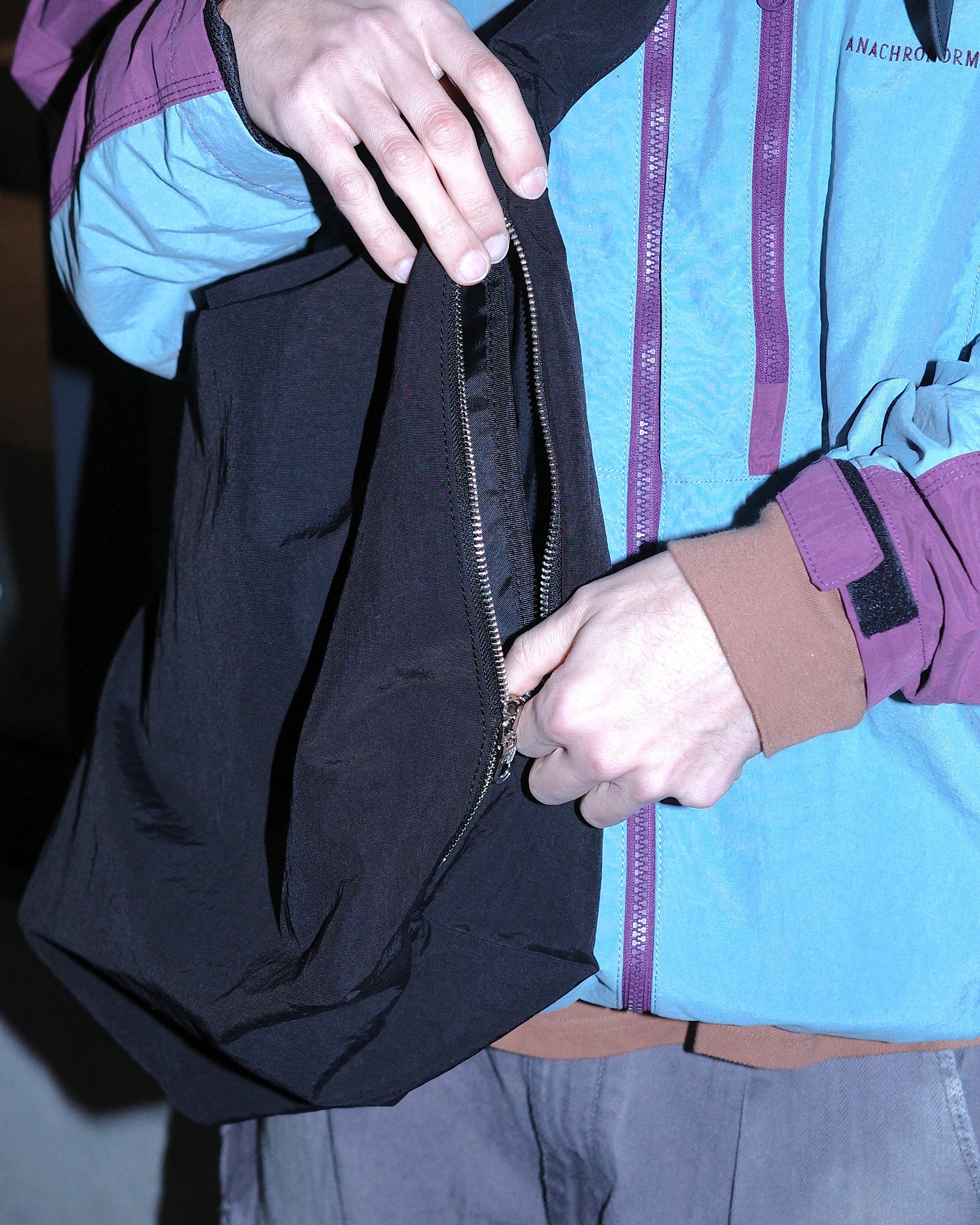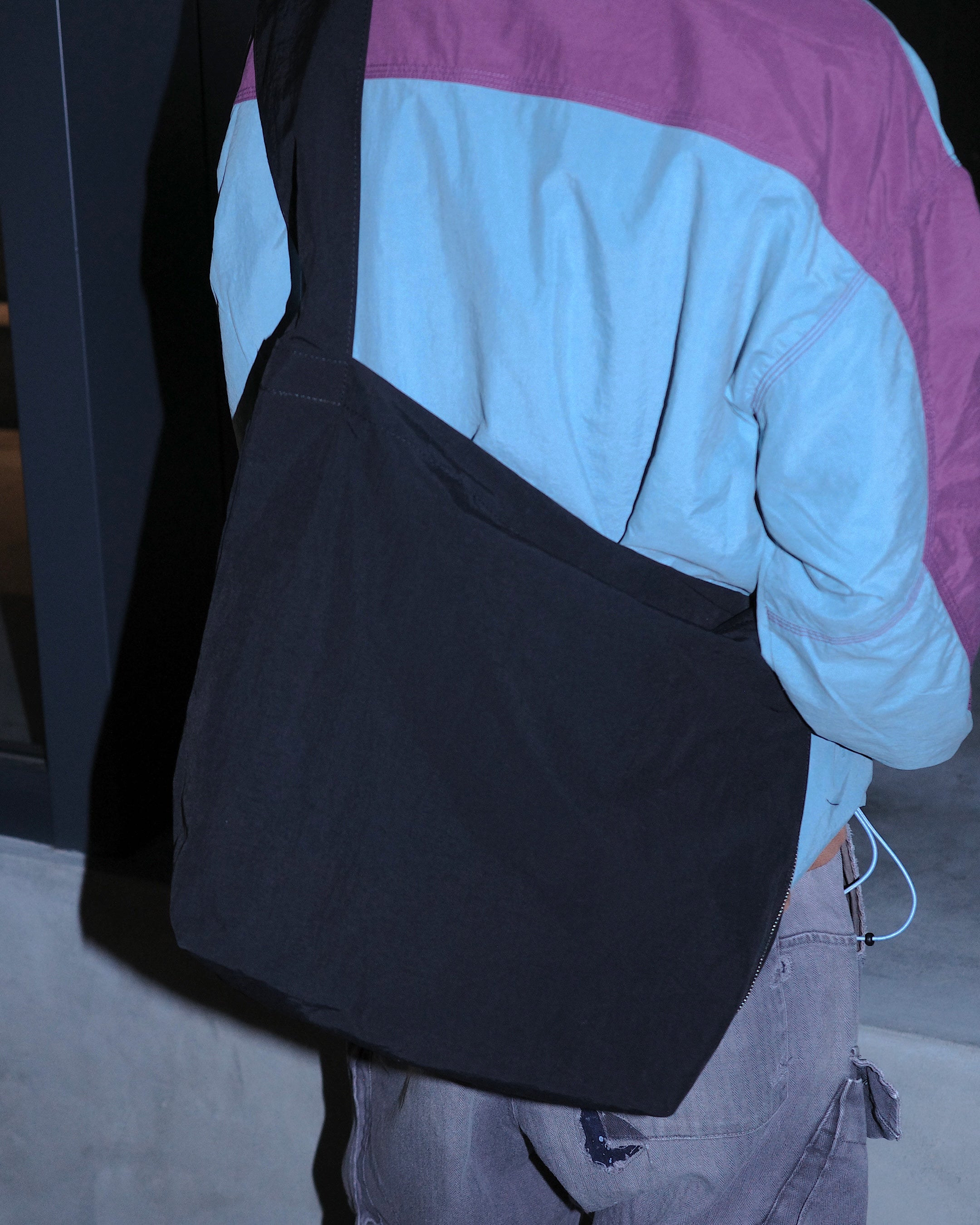 A pocket for storing smartphones, etc., is attached to the tip. The interior also includes a handle, allowing it to be used as a tote bag.