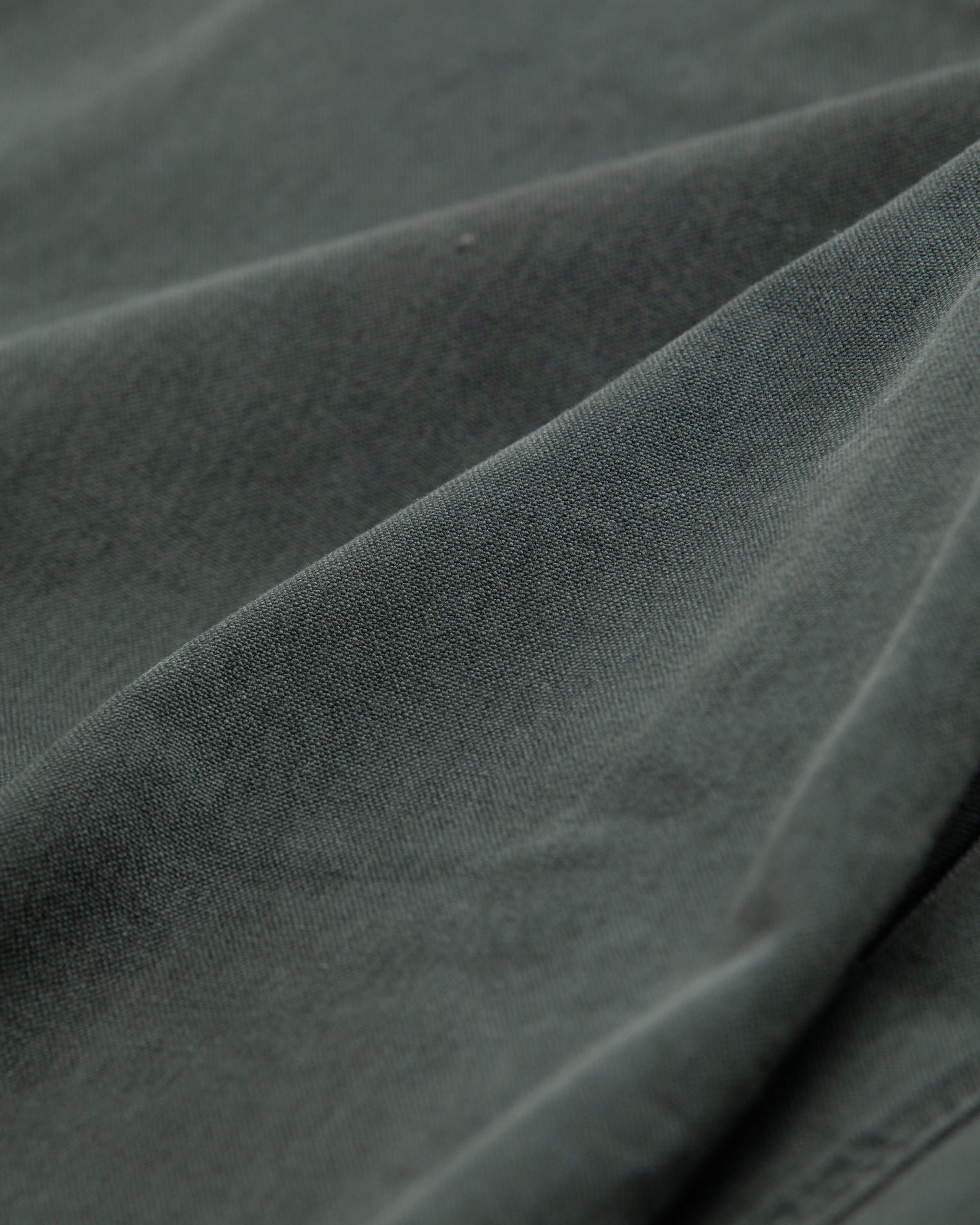 This specialized treatment emphasizes the texture of the fabric's raised and recessed areas while simultaneously fading the color, all while reducing water and chemical usage.