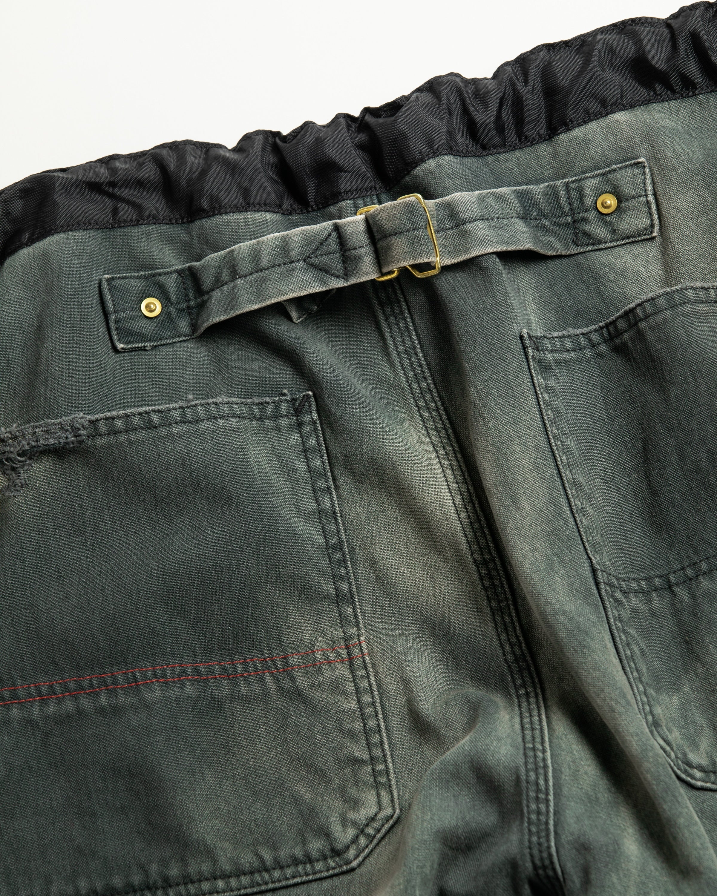 The waist section is accented with nylon oxford fabric to create a design that tones down the workwear feel.