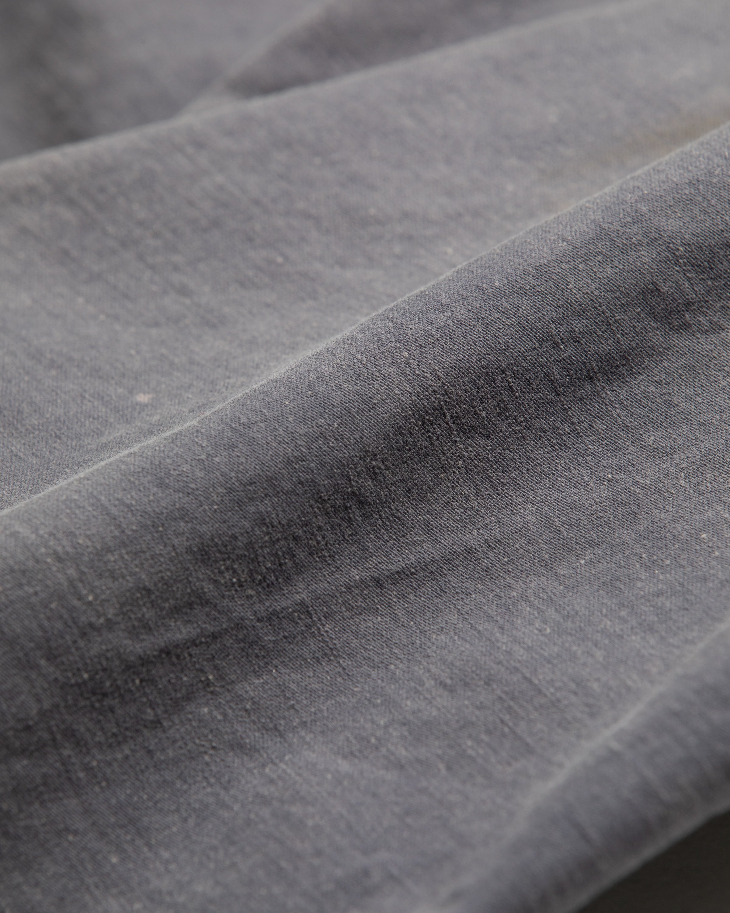 A specialized process that reduces water and chemical usage while accentuating the texture of the fabric's uneven surfaces and simultaneously fading the color.