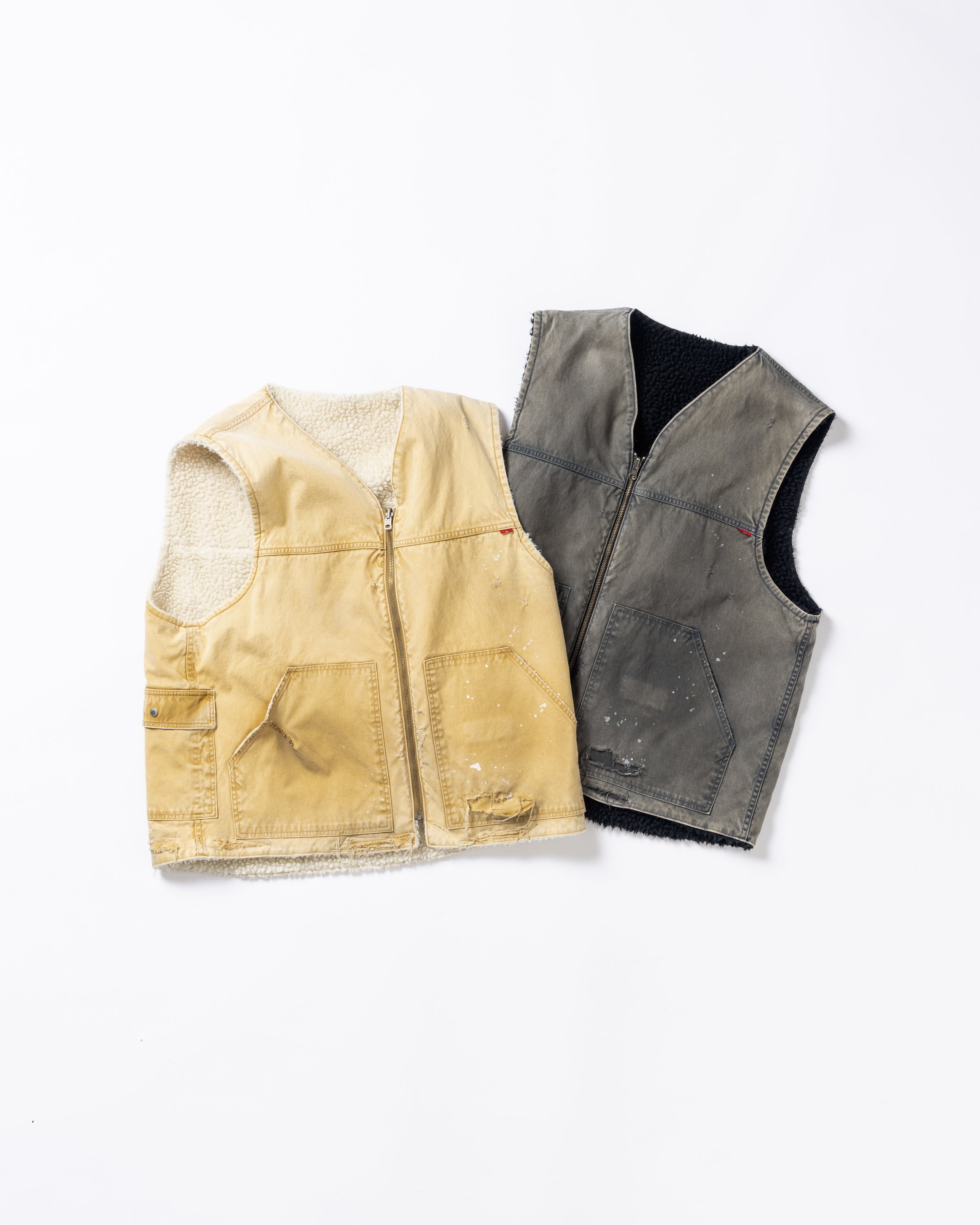 リバーシブルで着用が可能なダック×ボアのワークベスト。