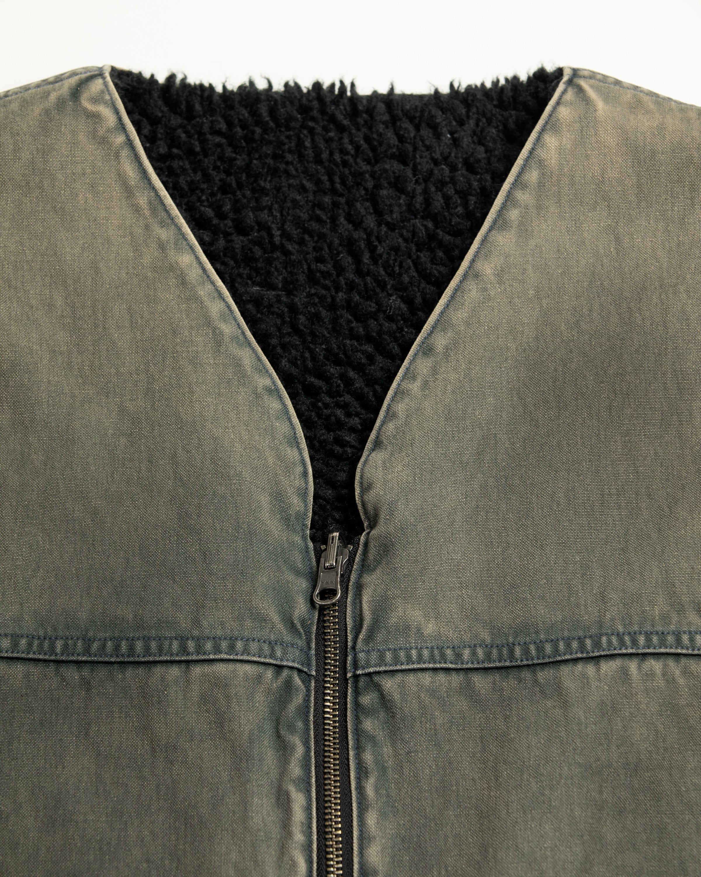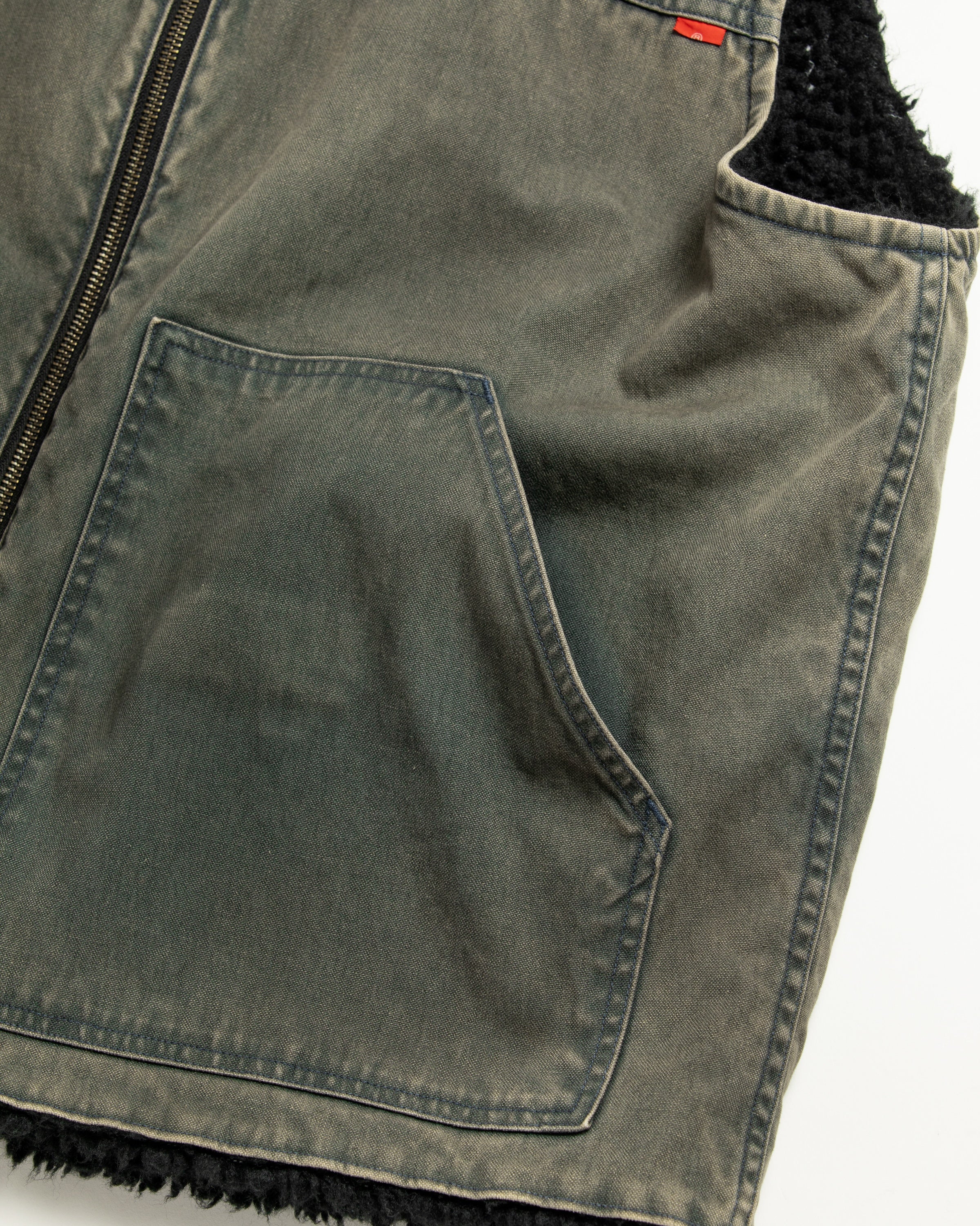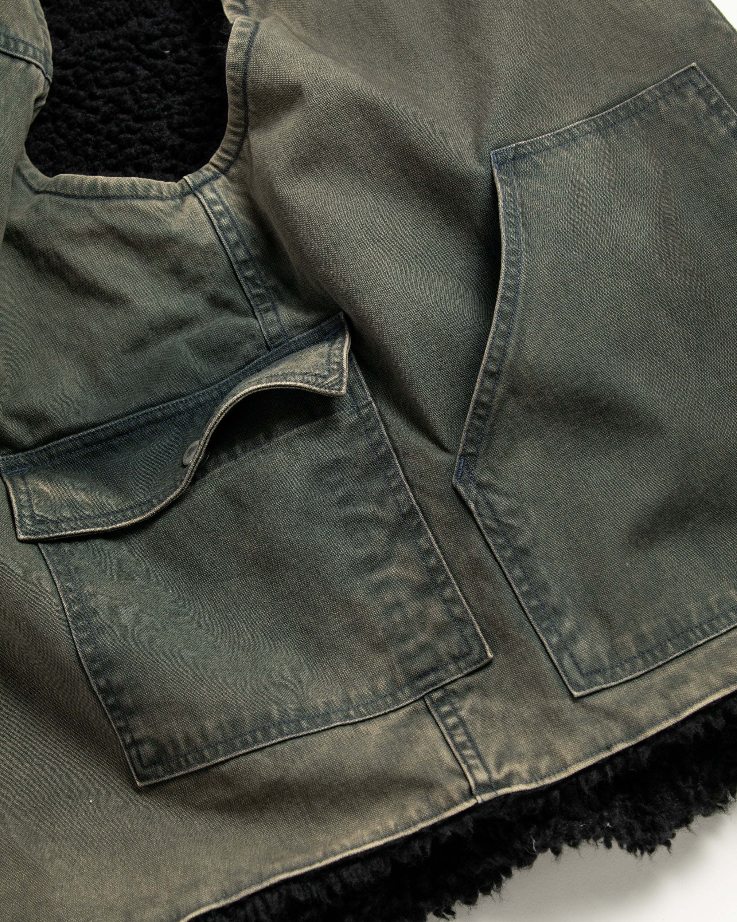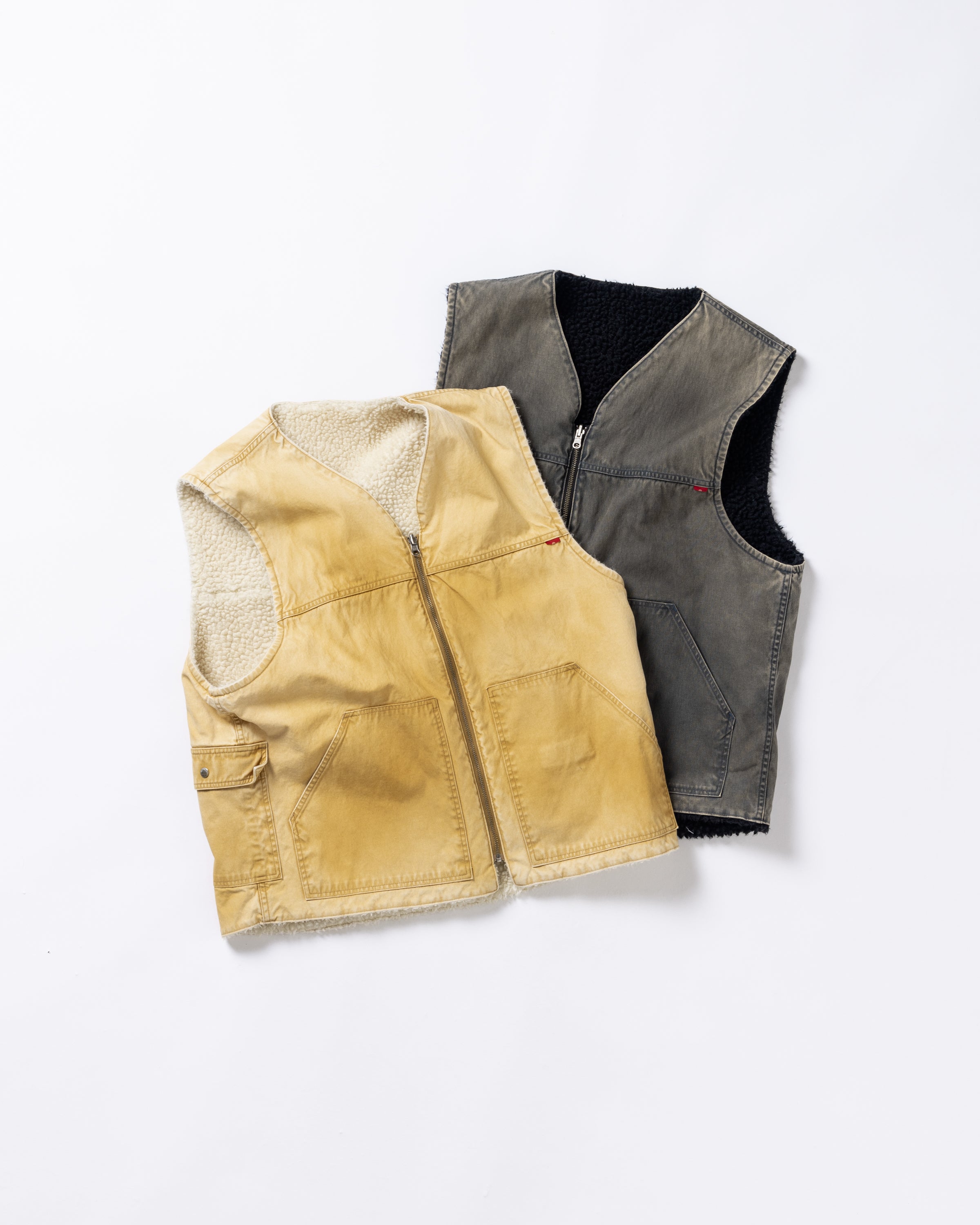 リバーシブルで着用が可能なダック×ボアのワークベスト。