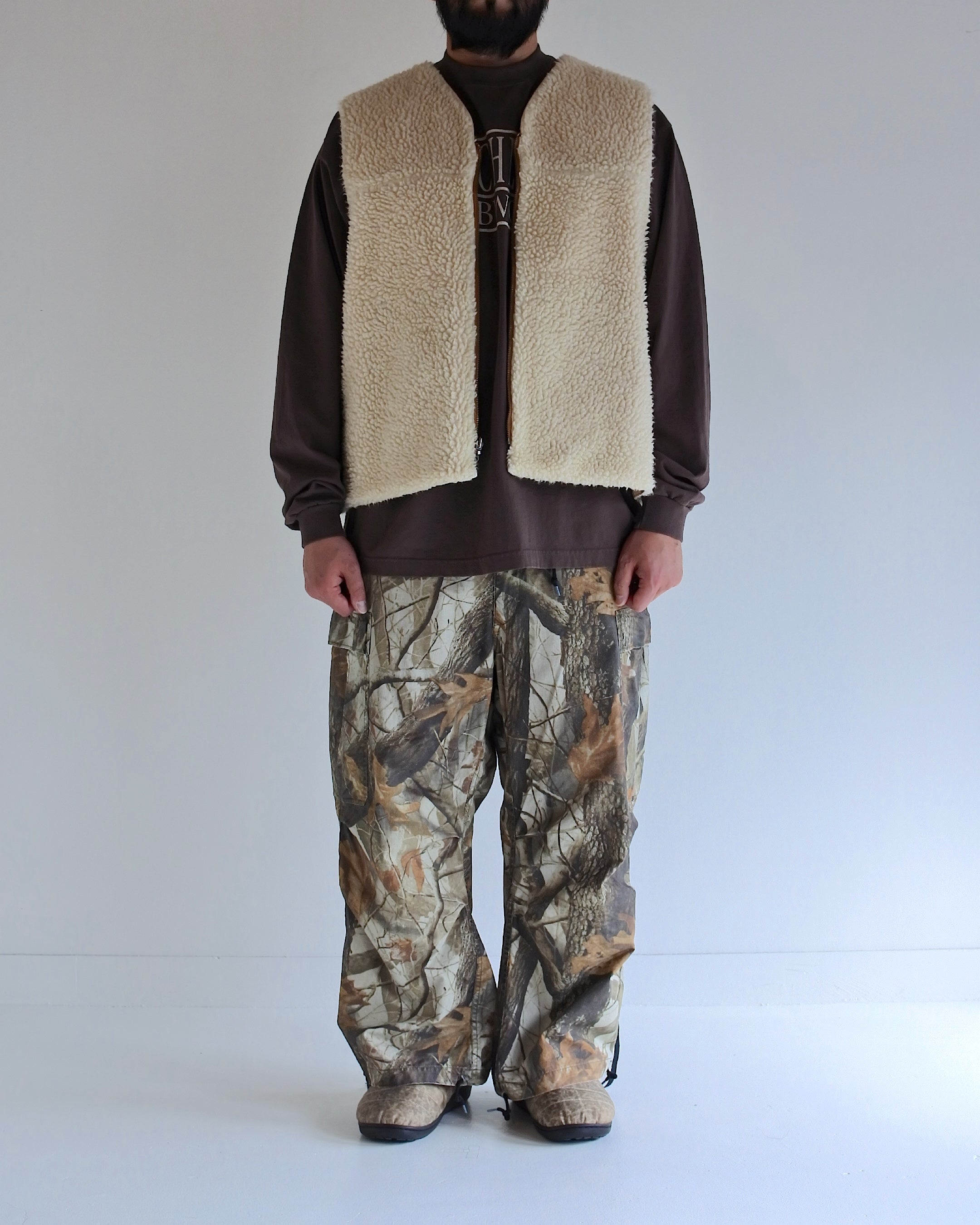 リバーシブルで着用が可能なダック×ボアのワークベスト。