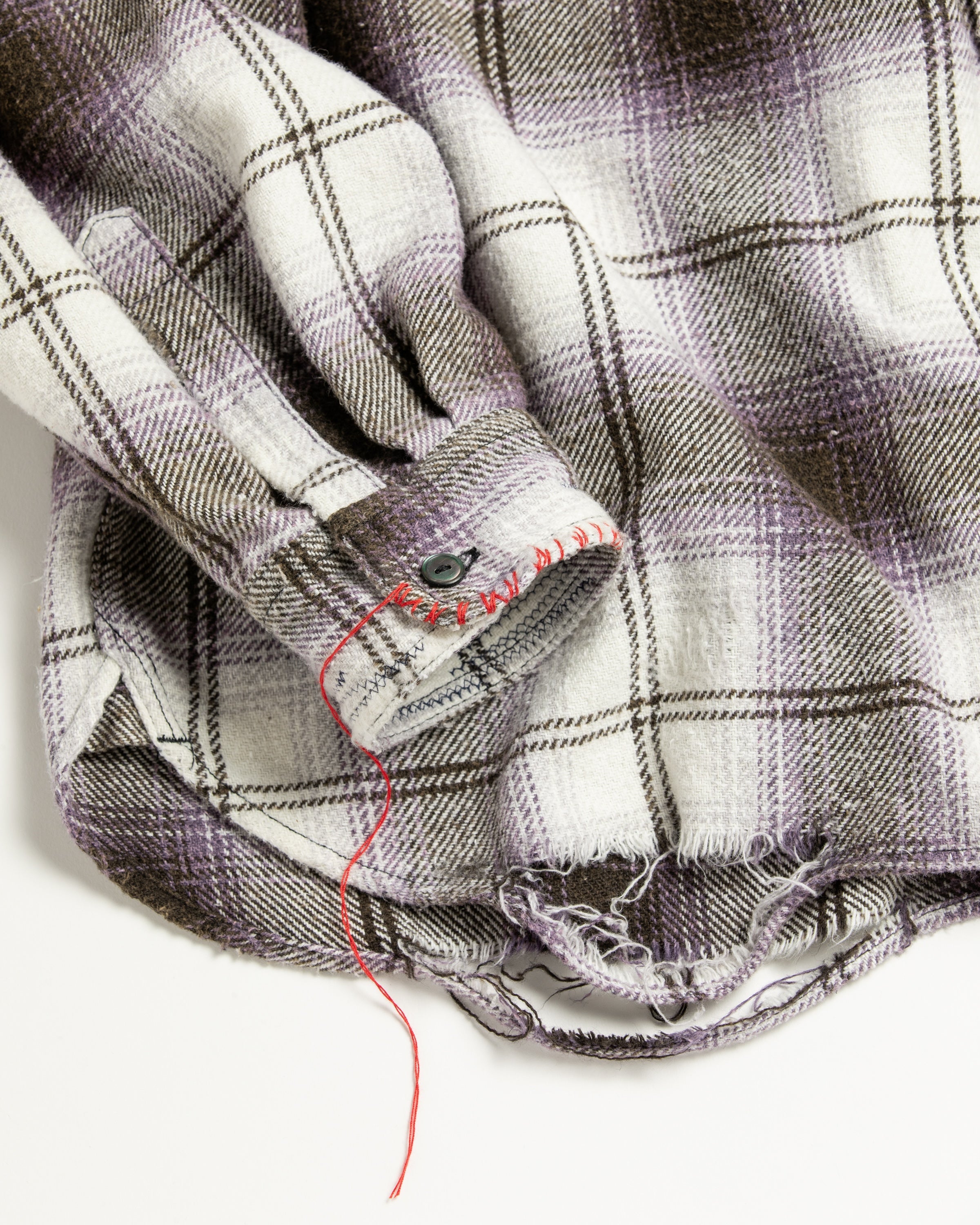 AN390 OMBRE CHECK DAMAGED WIDE FLANNEL SHIRTS PURPLE×BLACK