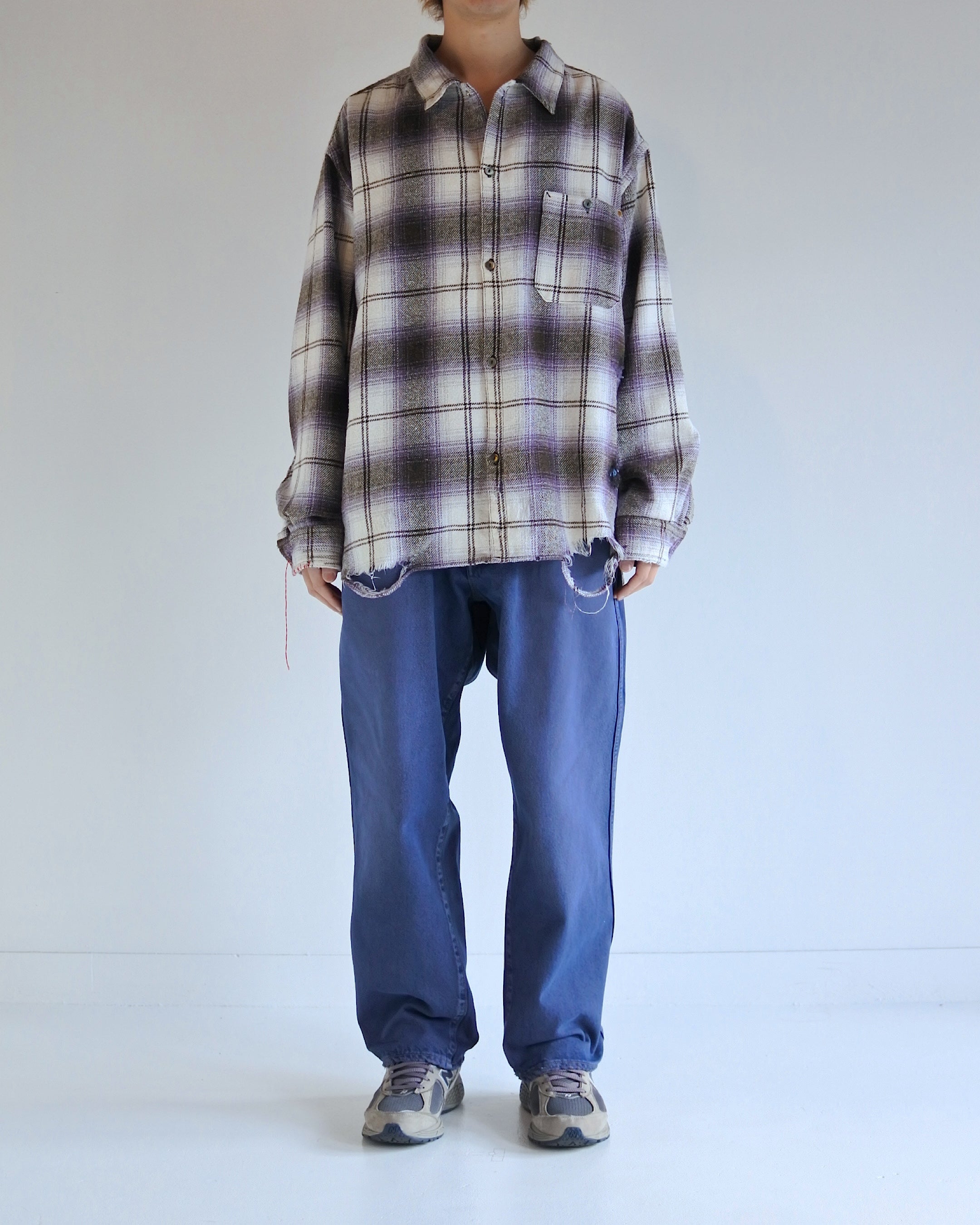 ANACHRONORM /OMBRE CHECK DAMAGED WIDE FLANNEL SHIRTS