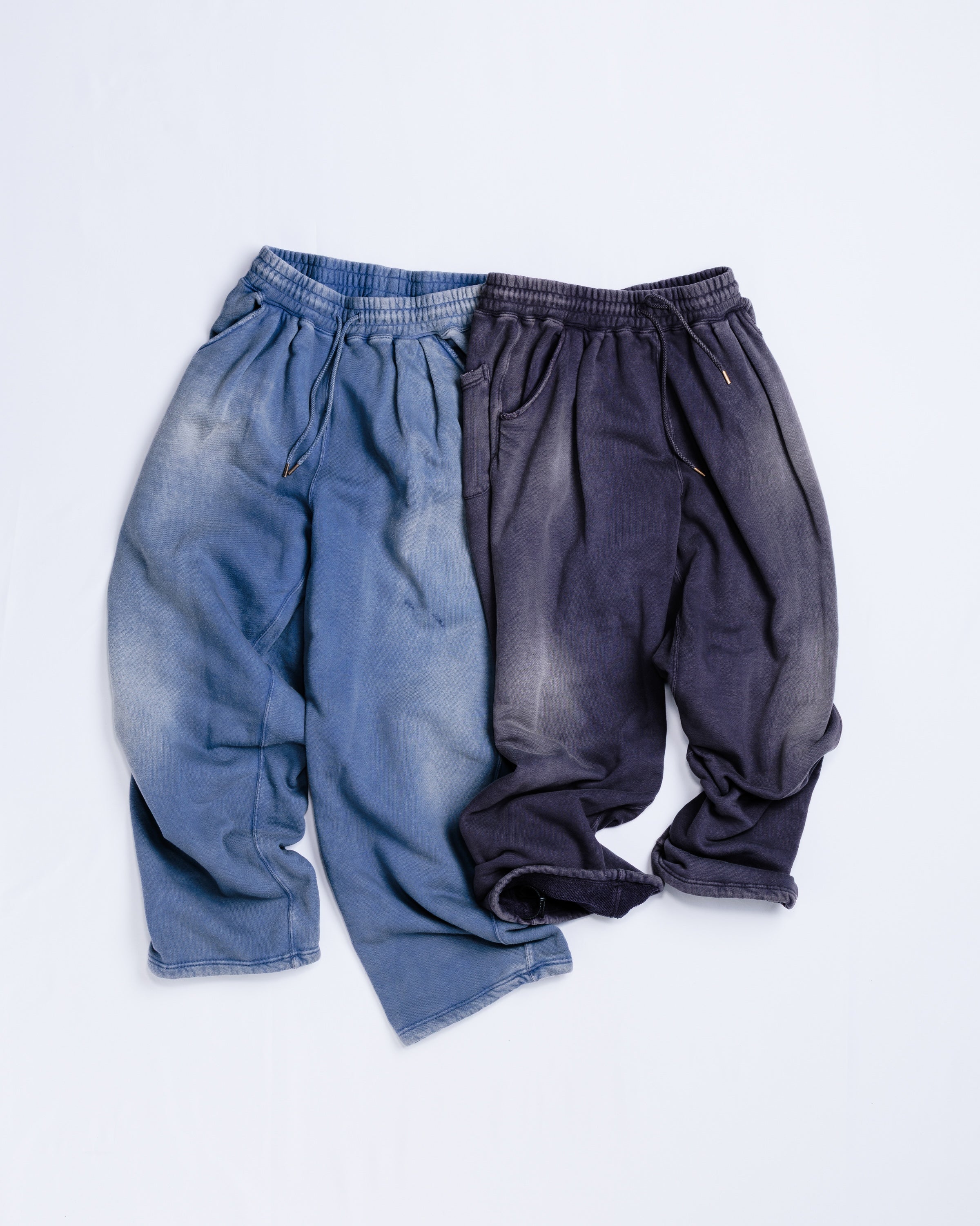 ANACHRONORM / FADED TUCK WIDE SWEAT PANTS - BLUE