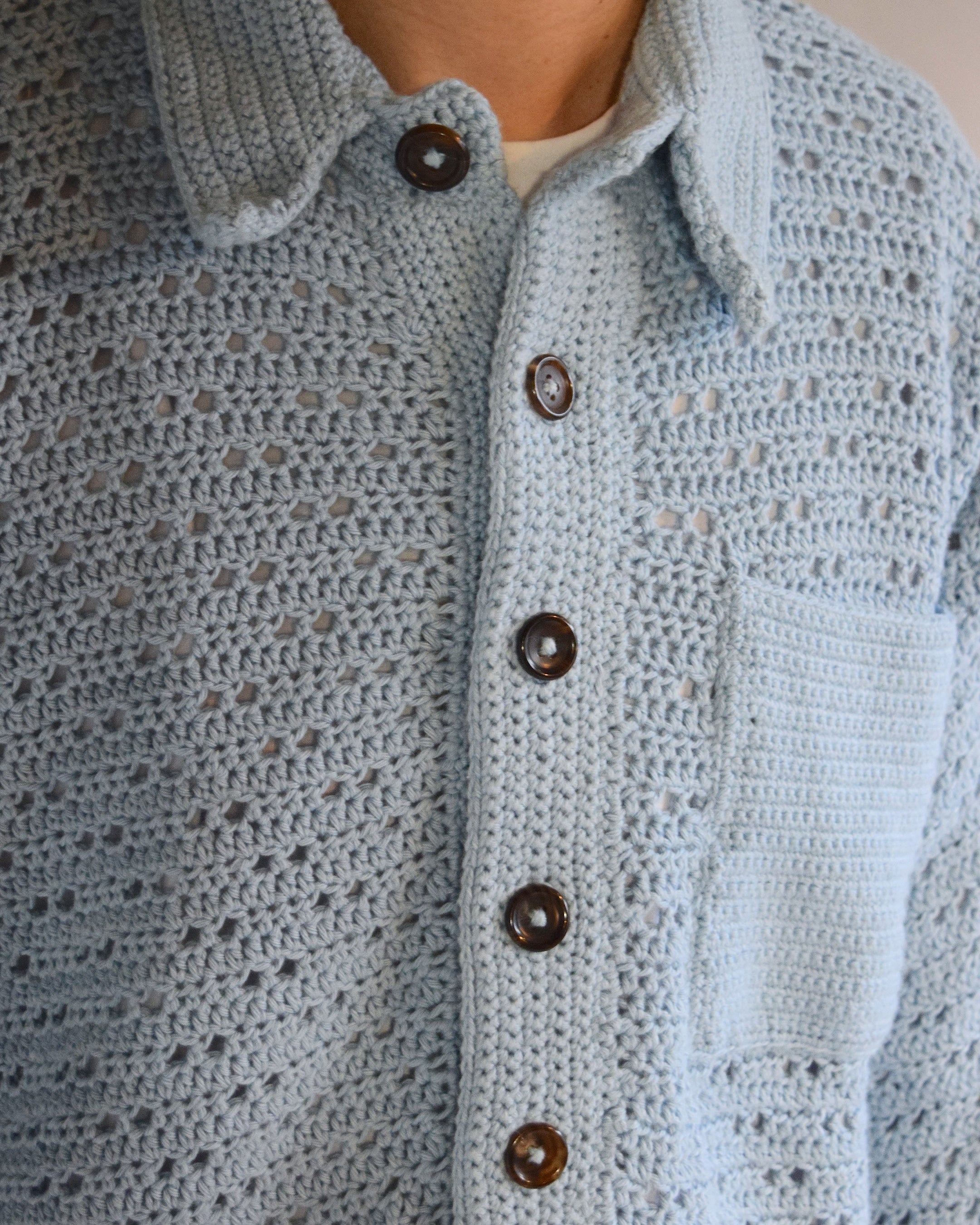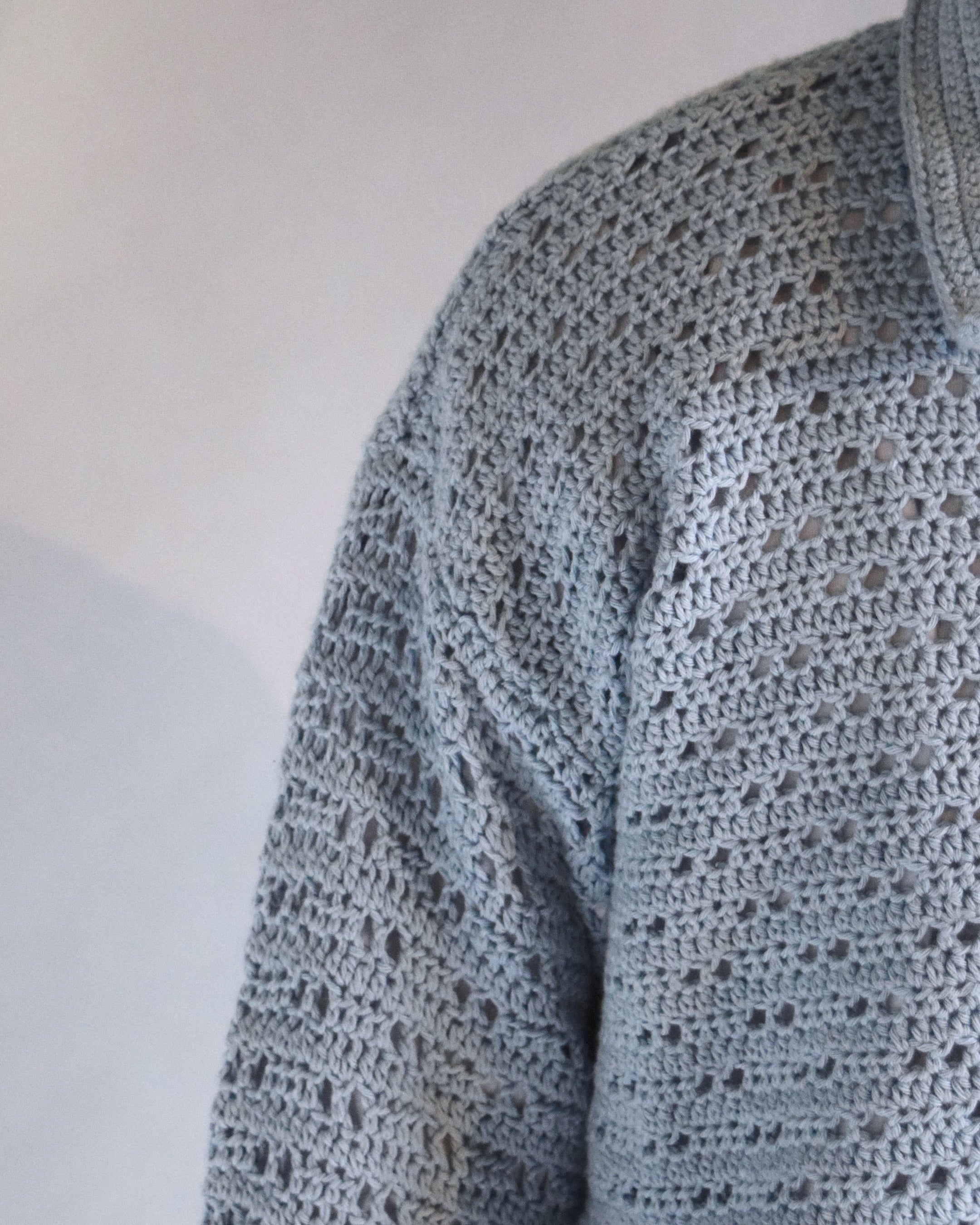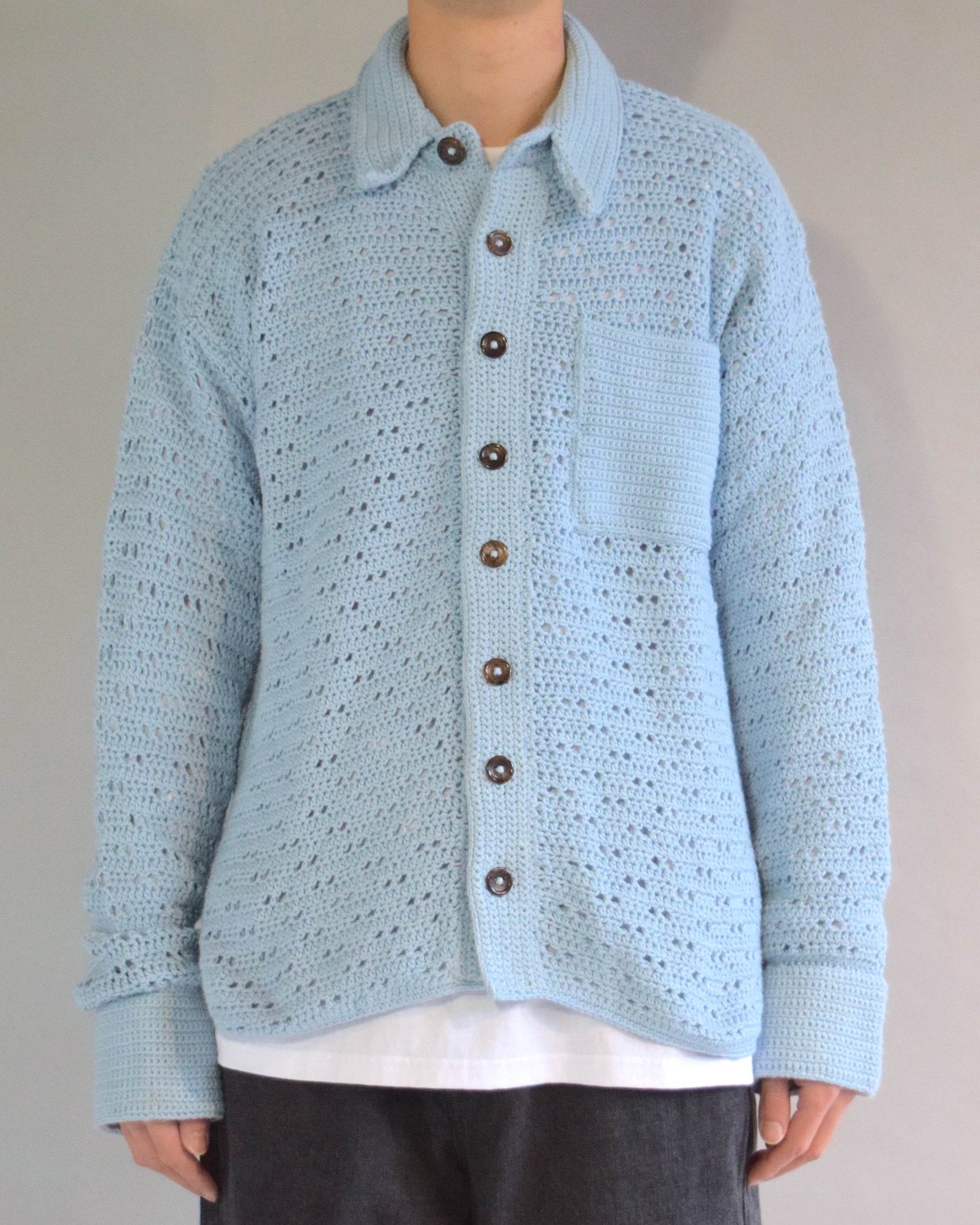 nakedgauge / HAND KNITTING MESH SHIRT - STEEL BLUE