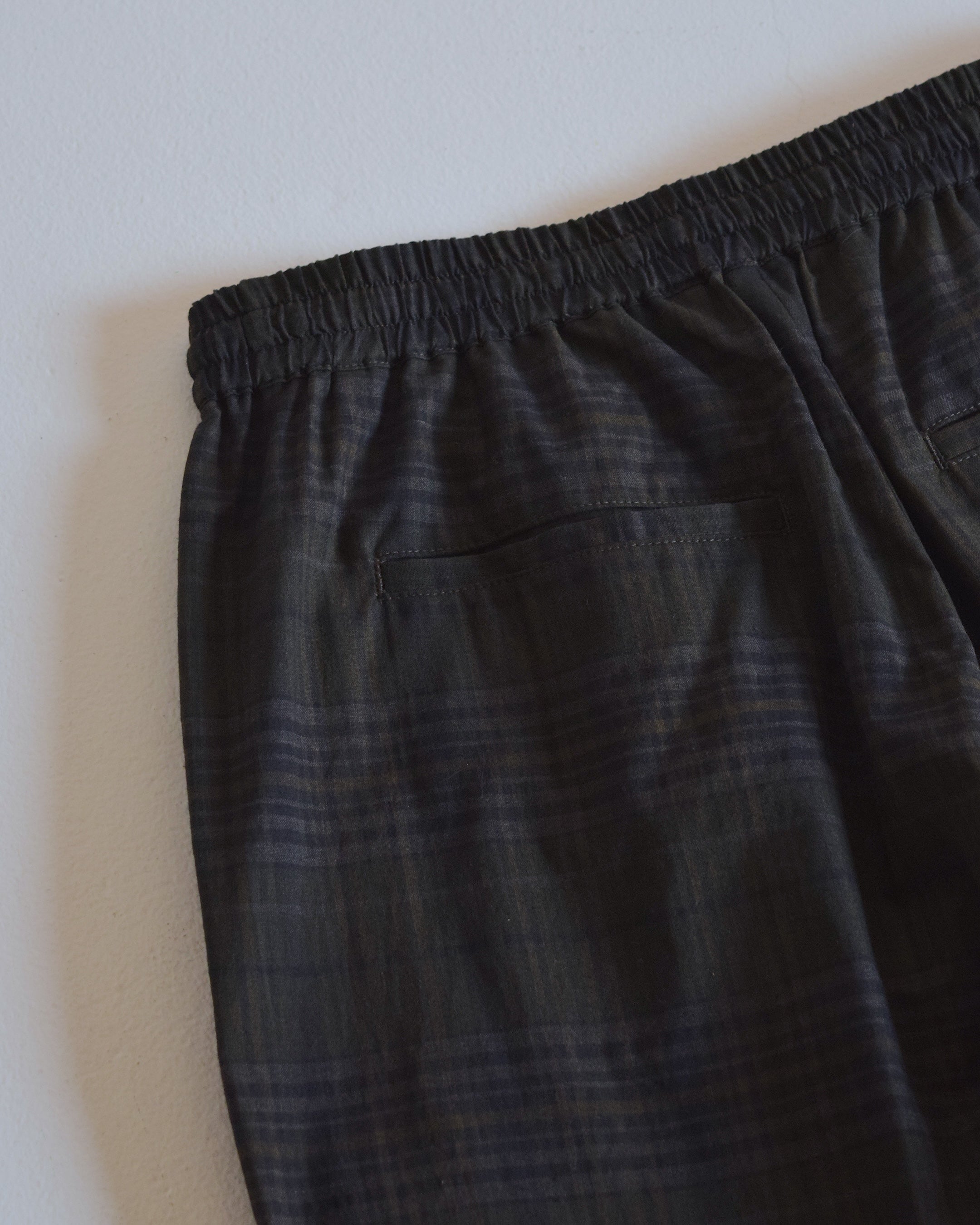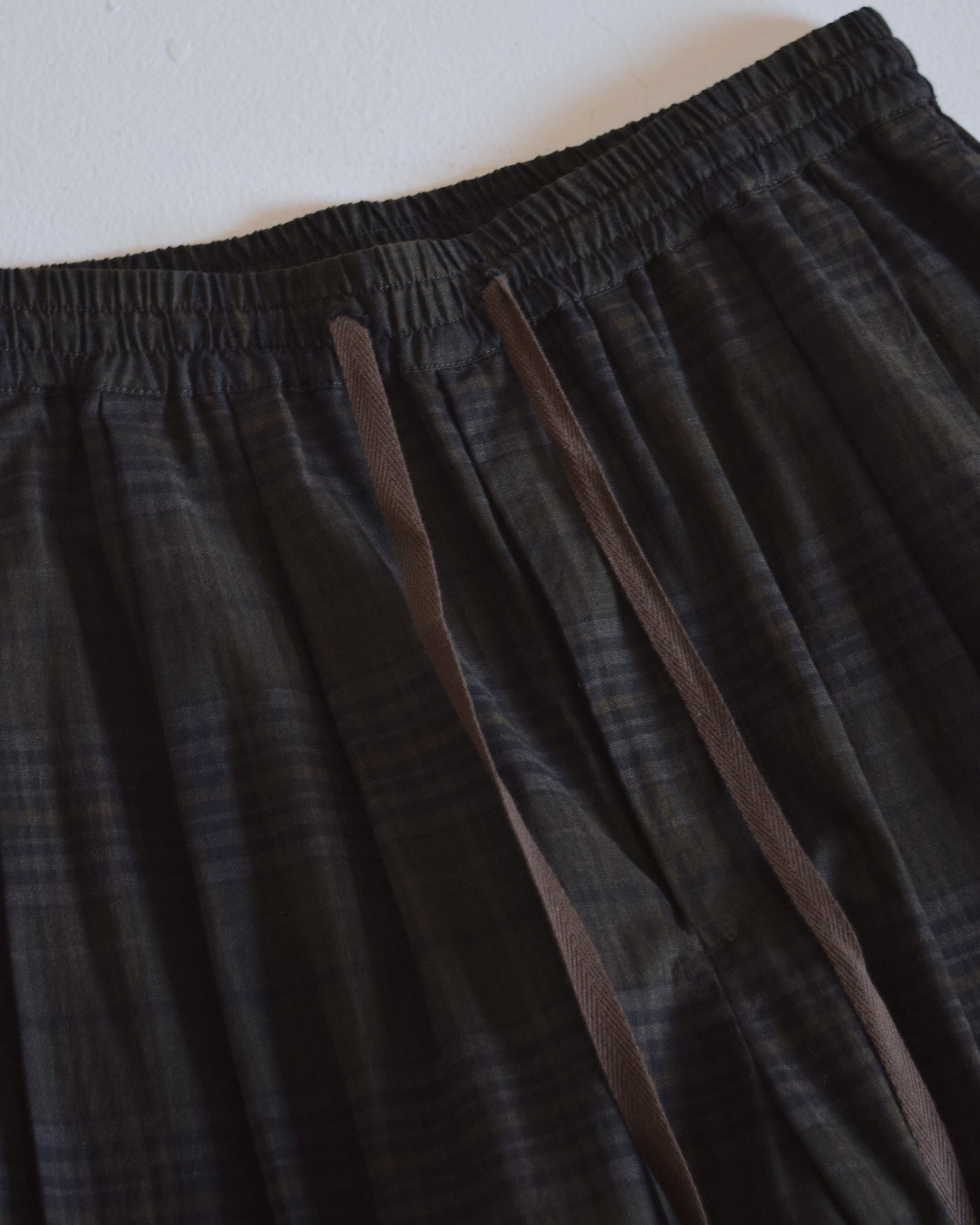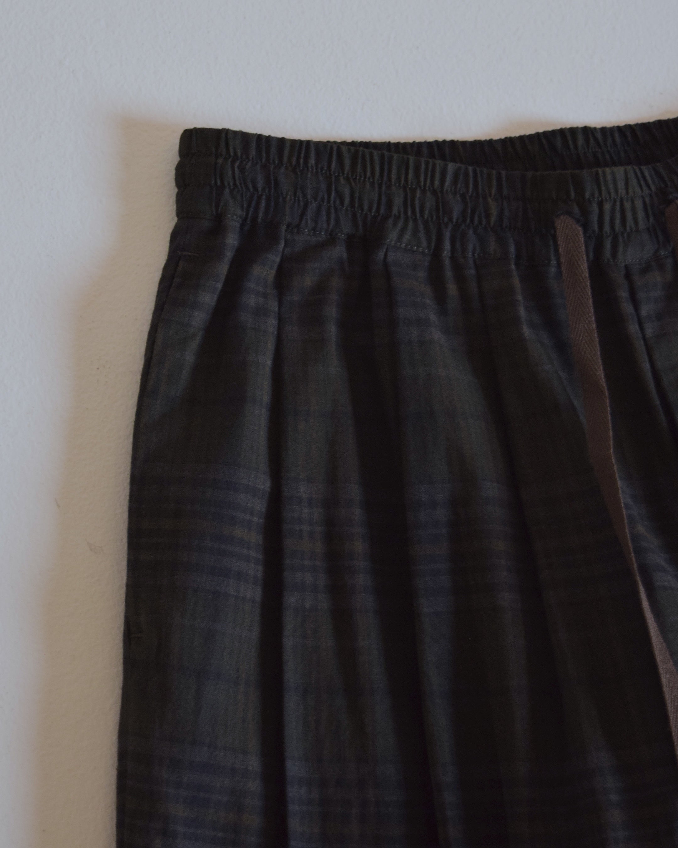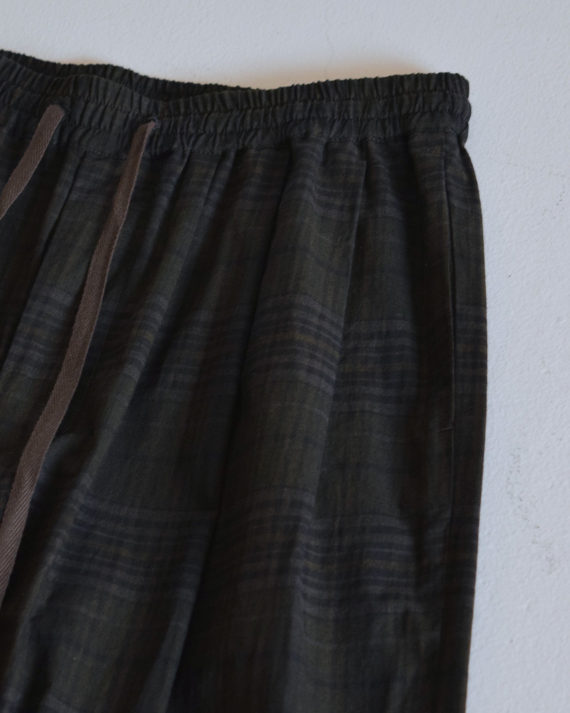 インド マドラスにて織られたチェック生地を使用したワイドイージーパンツ。