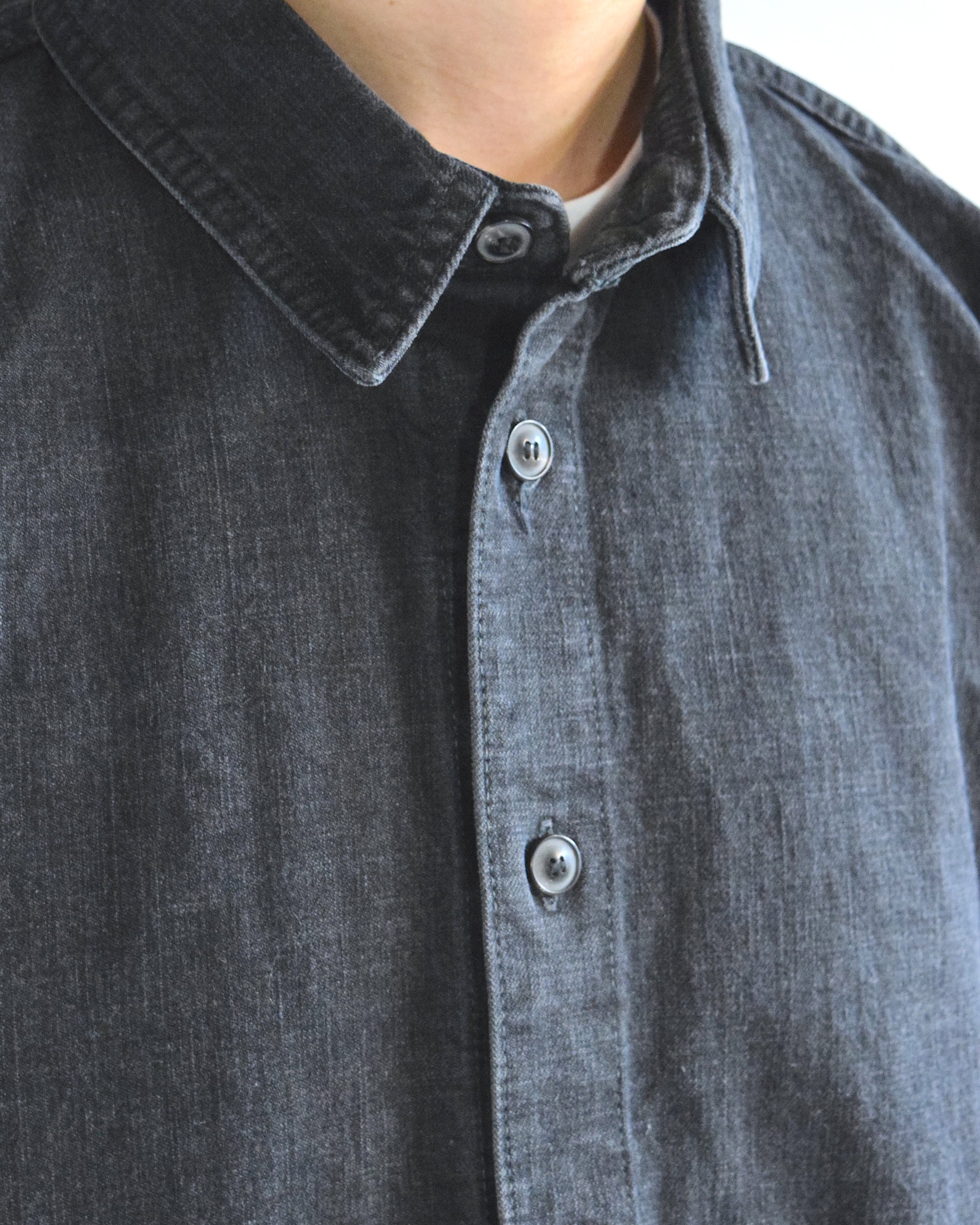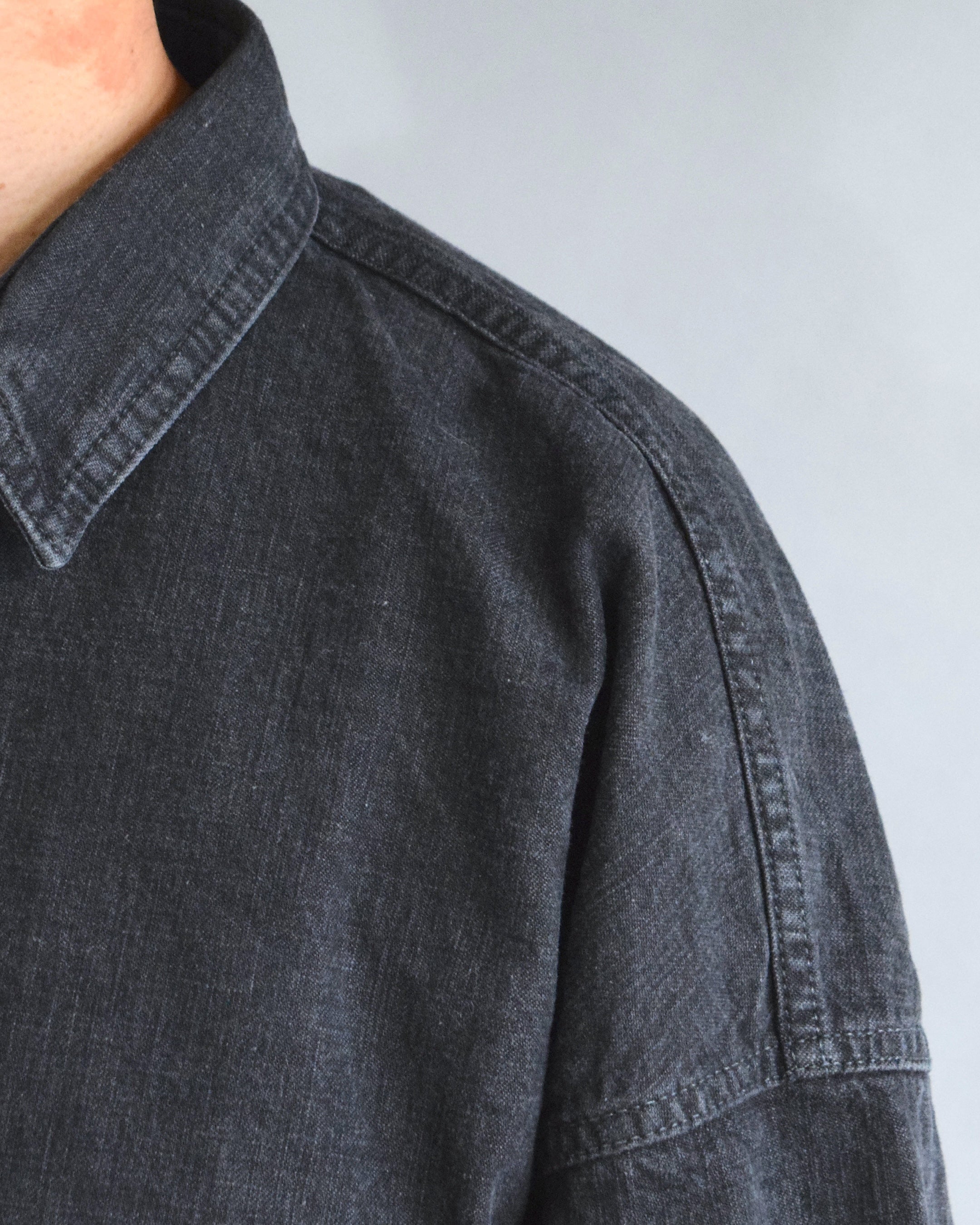 BLACK x CHARCOALで織ったデニムを色落ちさせた色感は今度のnakedgaugeの26SSを表現するにふさわしい一着。