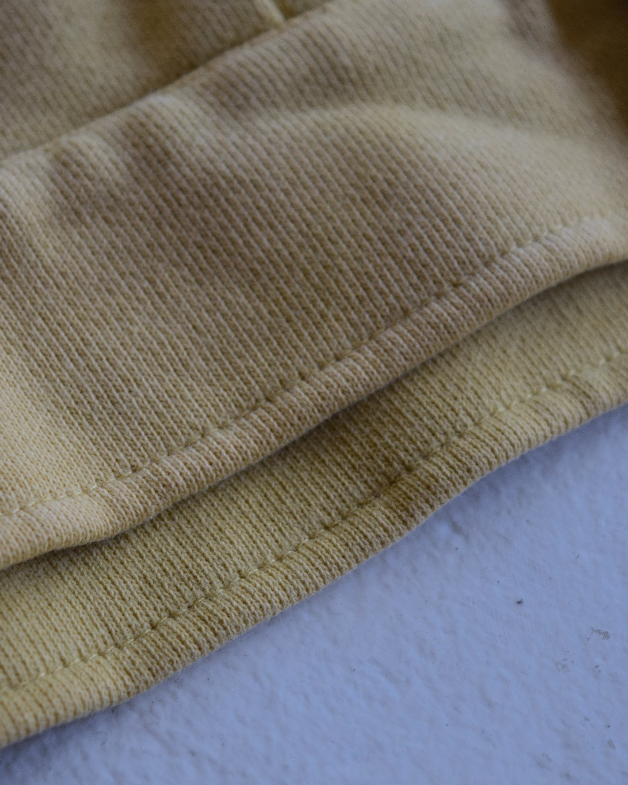 The sweatshirt fabric is sulfide-dyed and powder bleached to reproduce the vintage atmosphere of the 50s and 60s.
