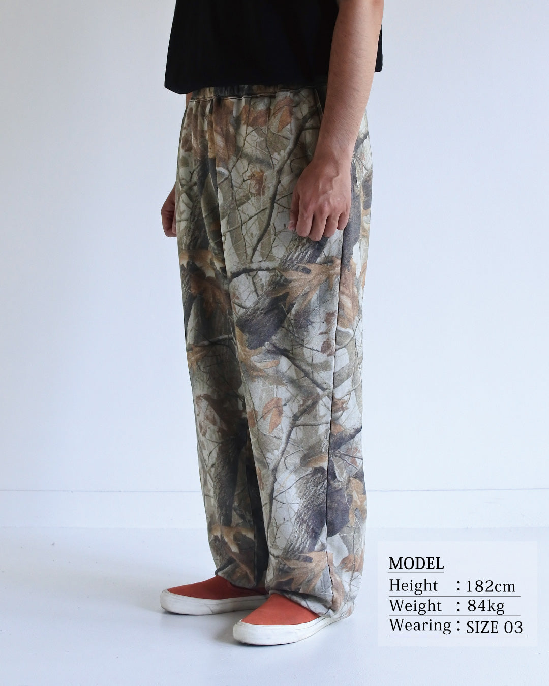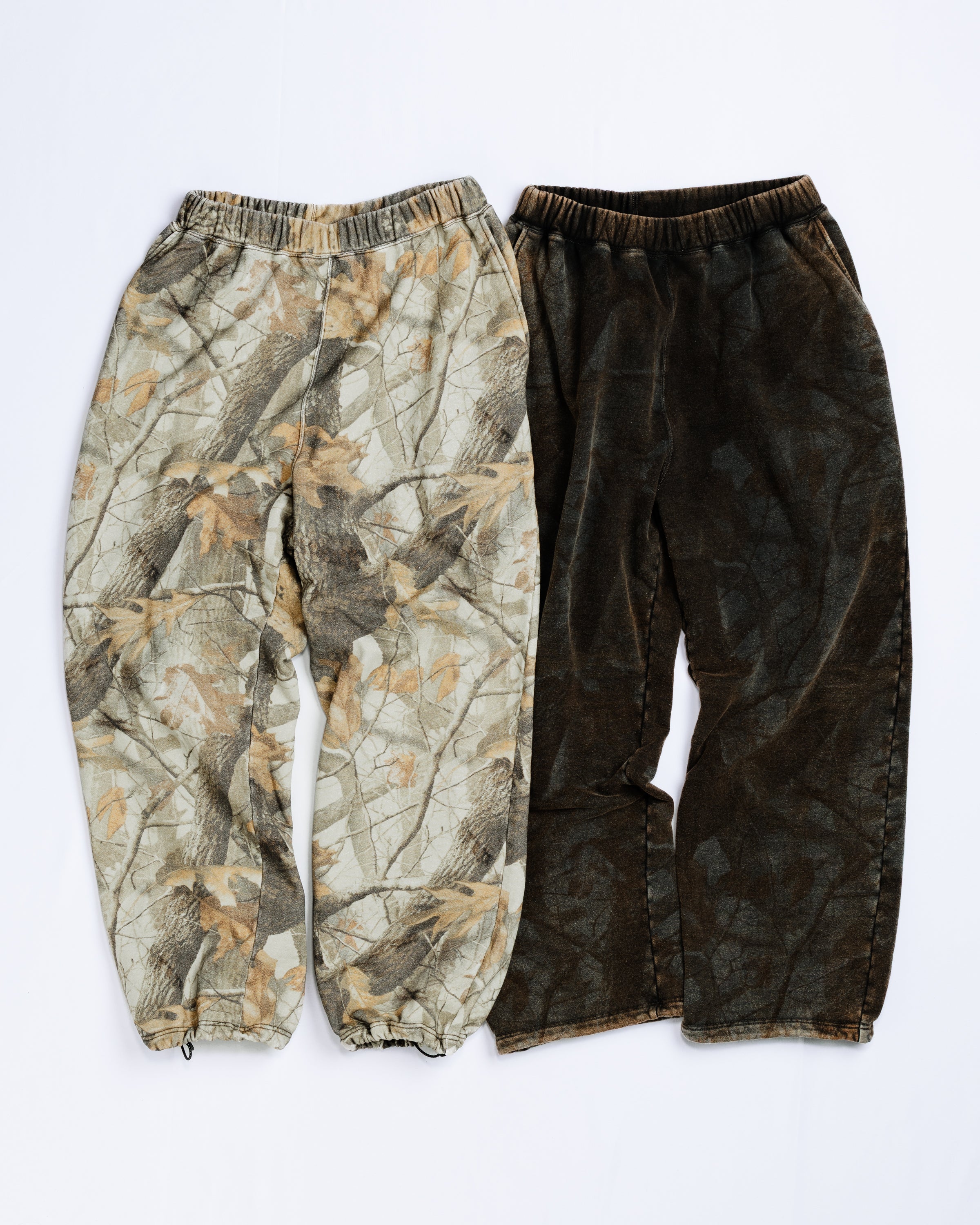オリジナルのリアルツリー柄生地を使用したスウェットパンツ。