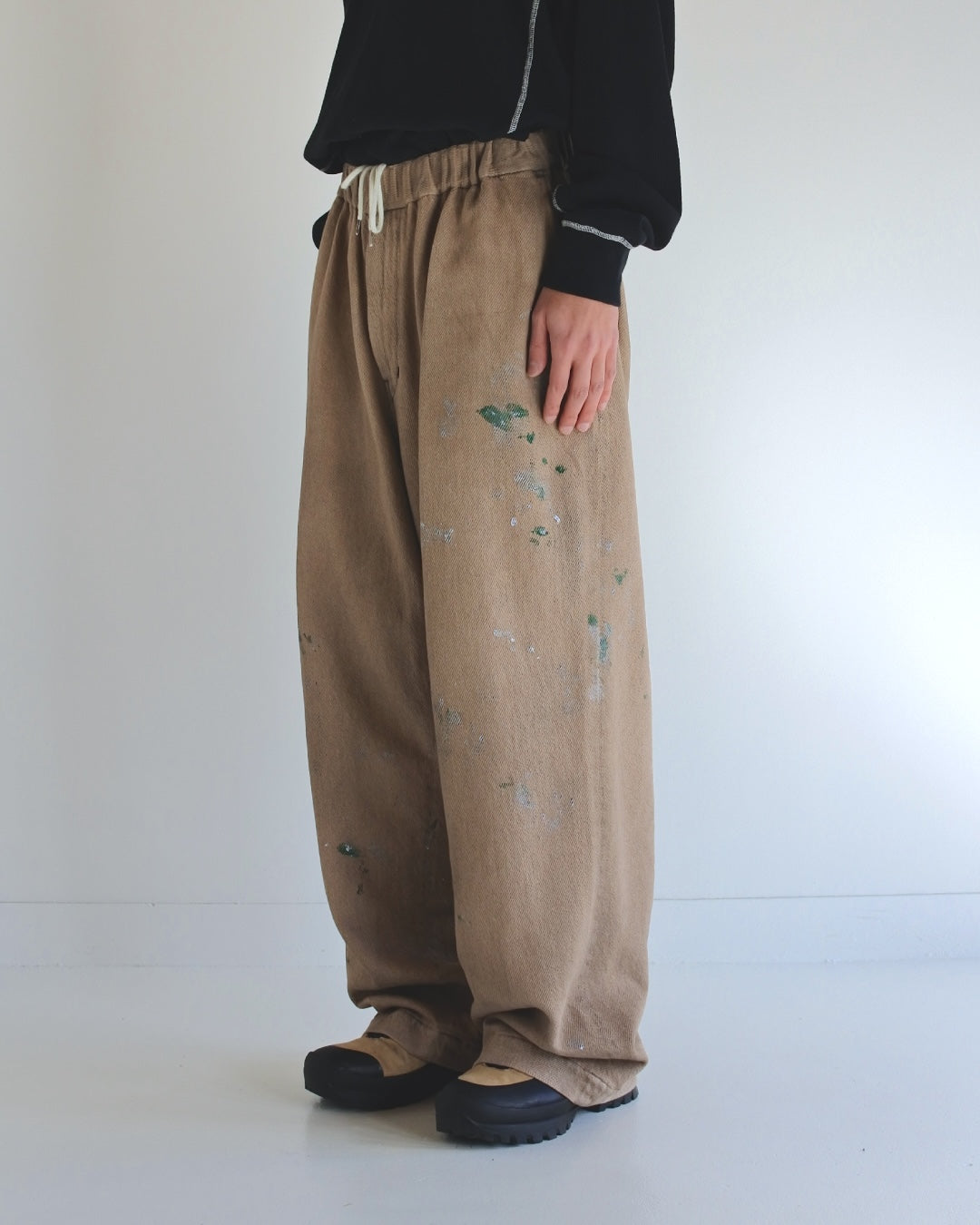 シルエットを重視したワイドイージパンツ。