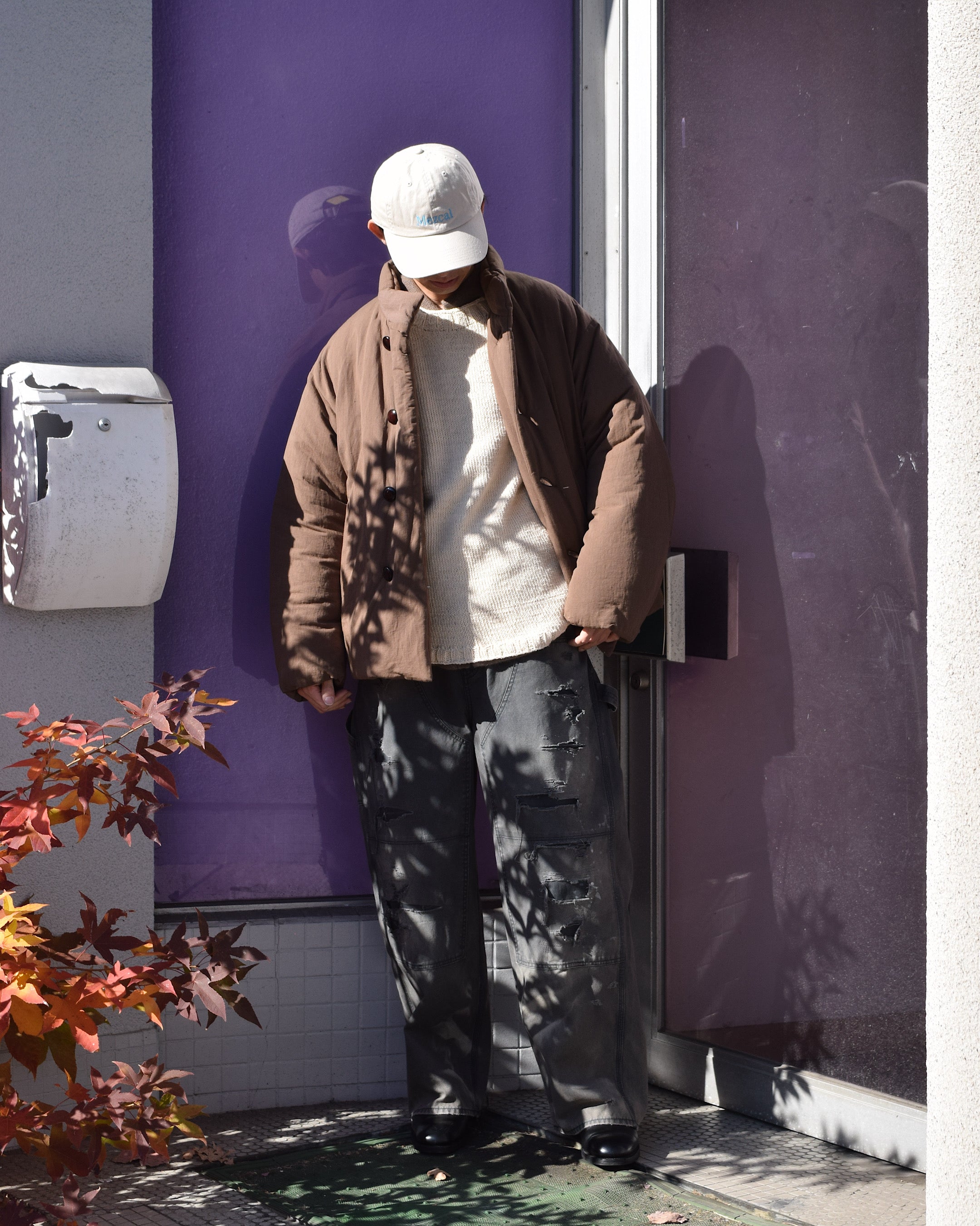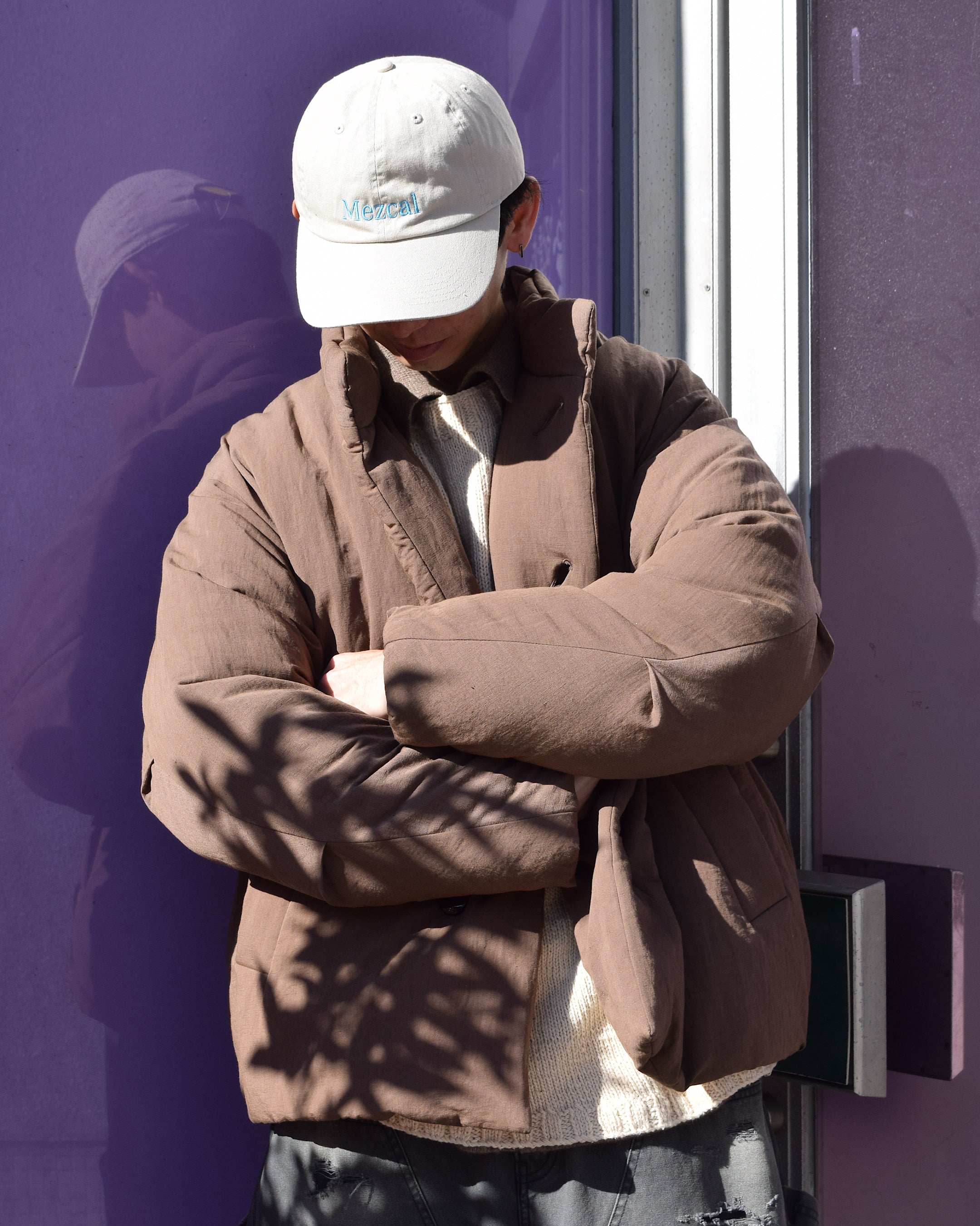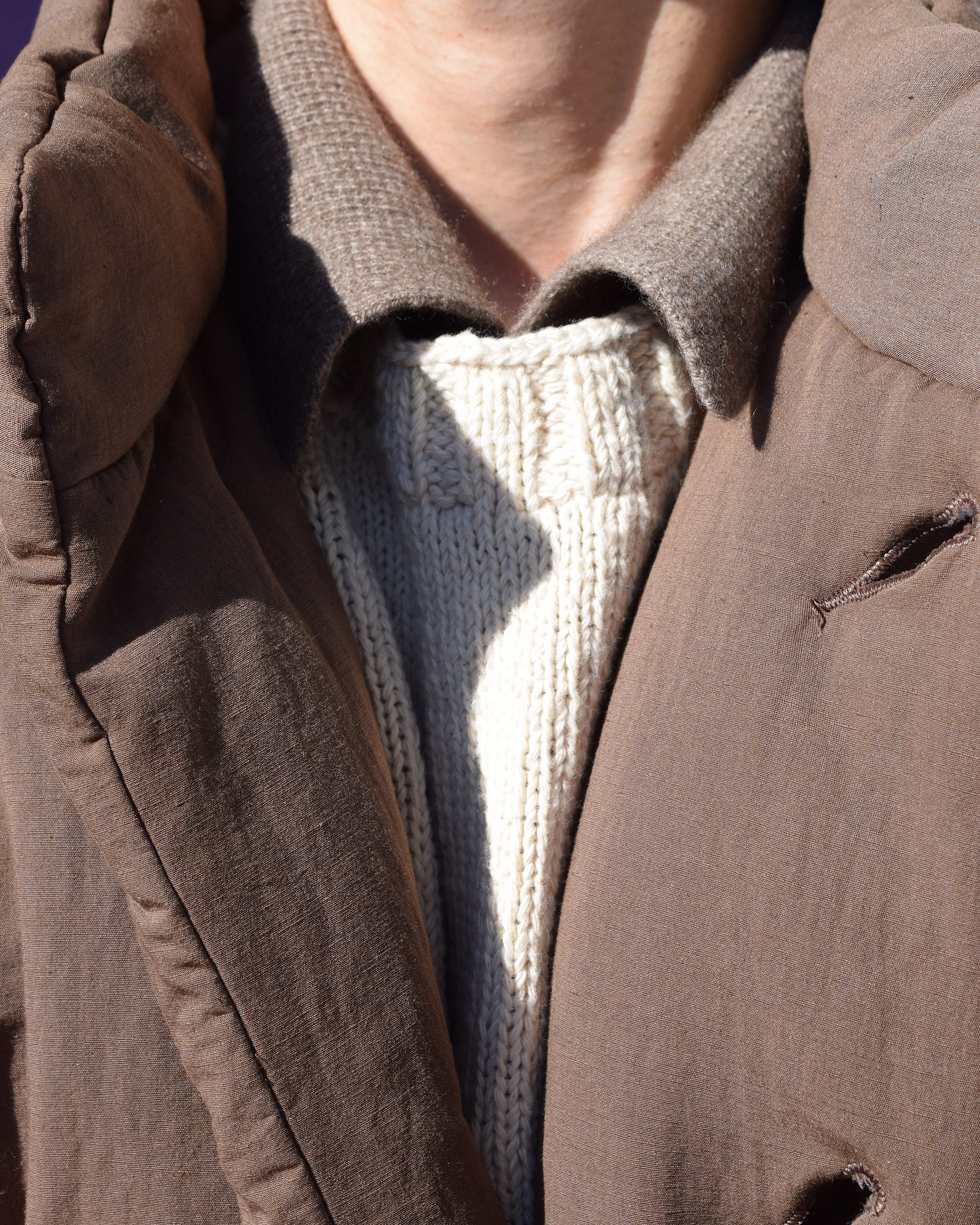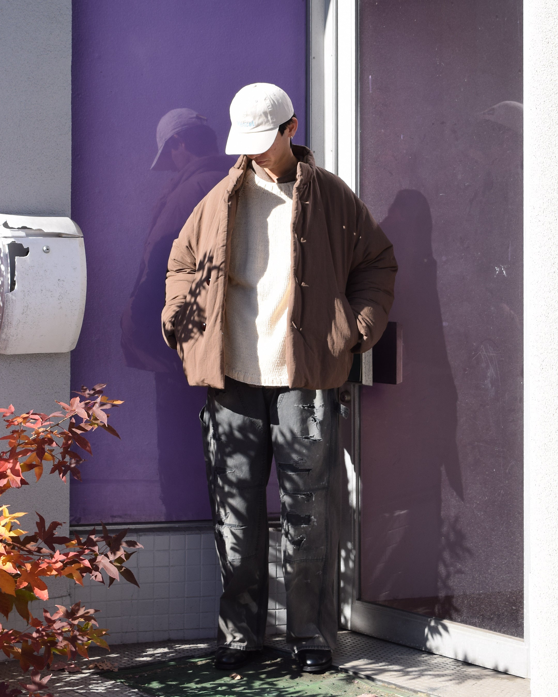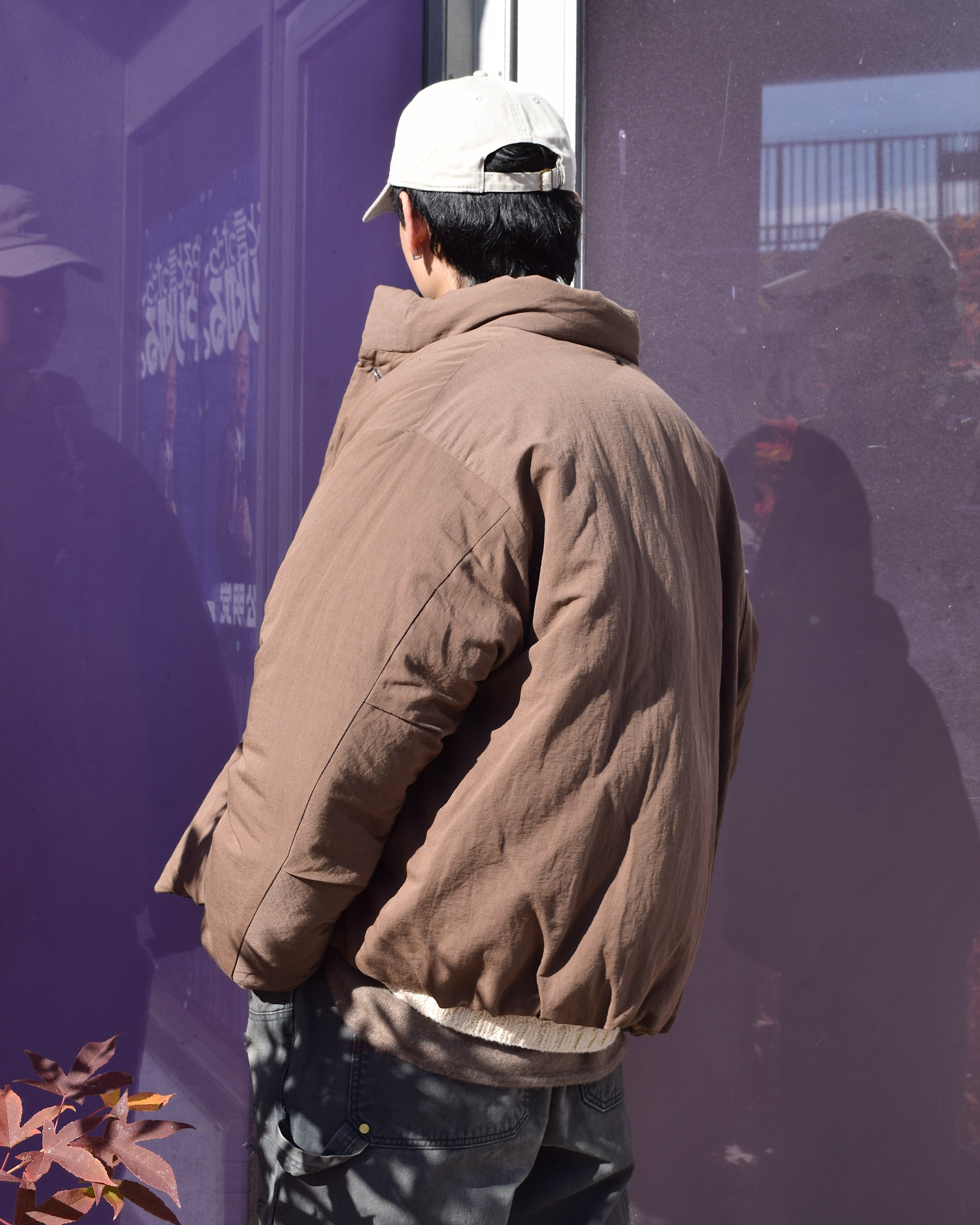 表地に撥水加工のリネン混の生地を使用し、裏地にsatou定番の八重蔵さんの綾織生地を使用した中綿ブルゾン。