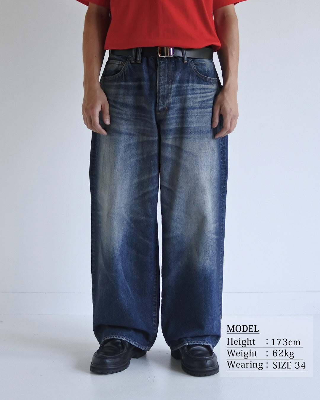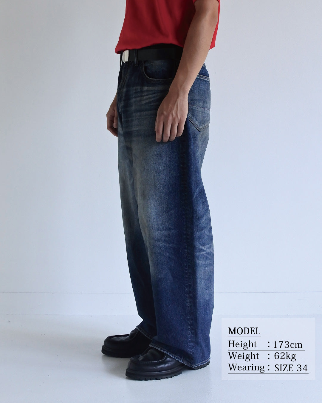 [ 商品名: エイジング ワイド 5ポケット デニムパンツ ]