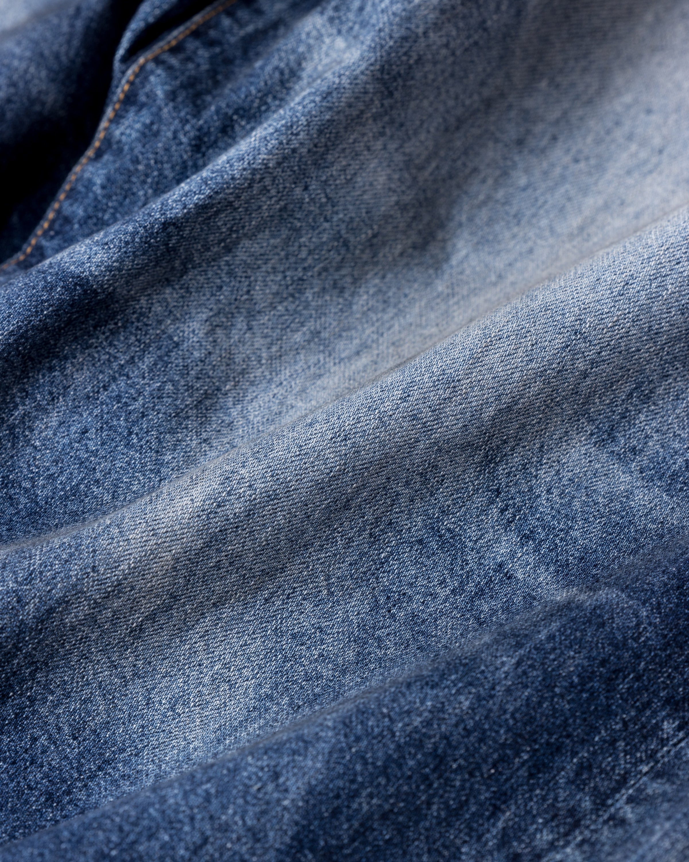 最大の特徴は適度に出る自然なムラ感で、デニム自体の絶妙な厚さと程よくマッチしたビンテージデニムの雰囲気が漂う生地です。
