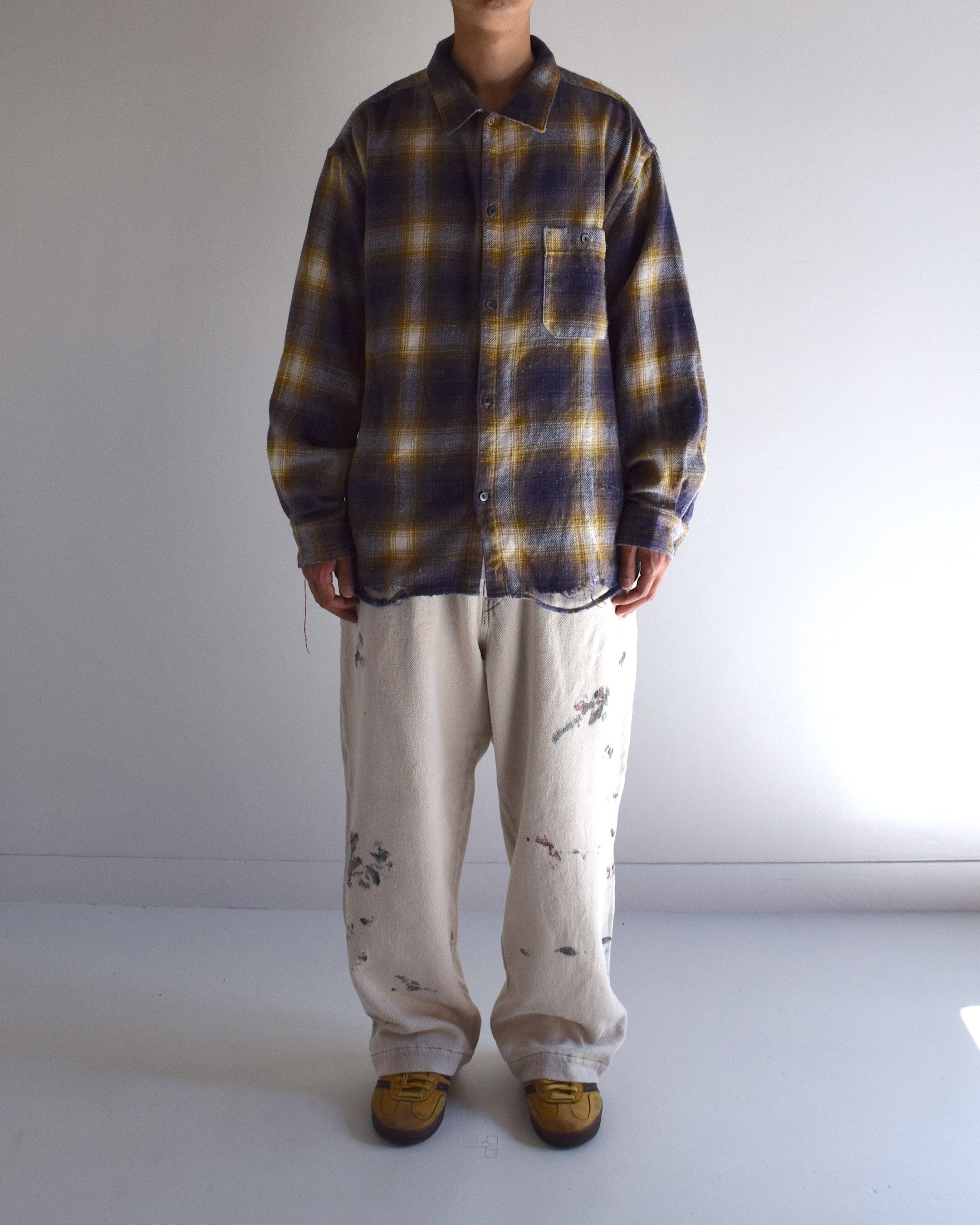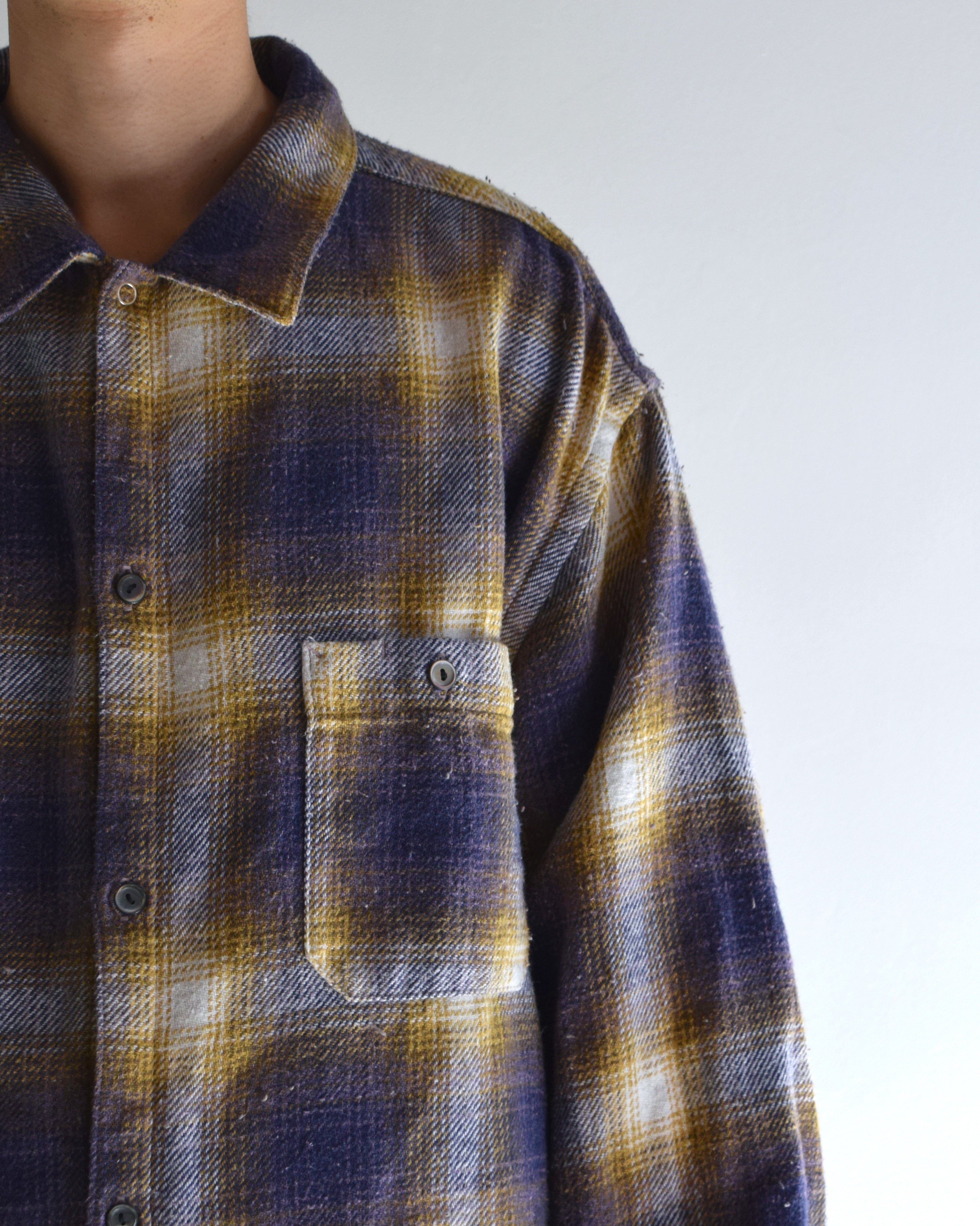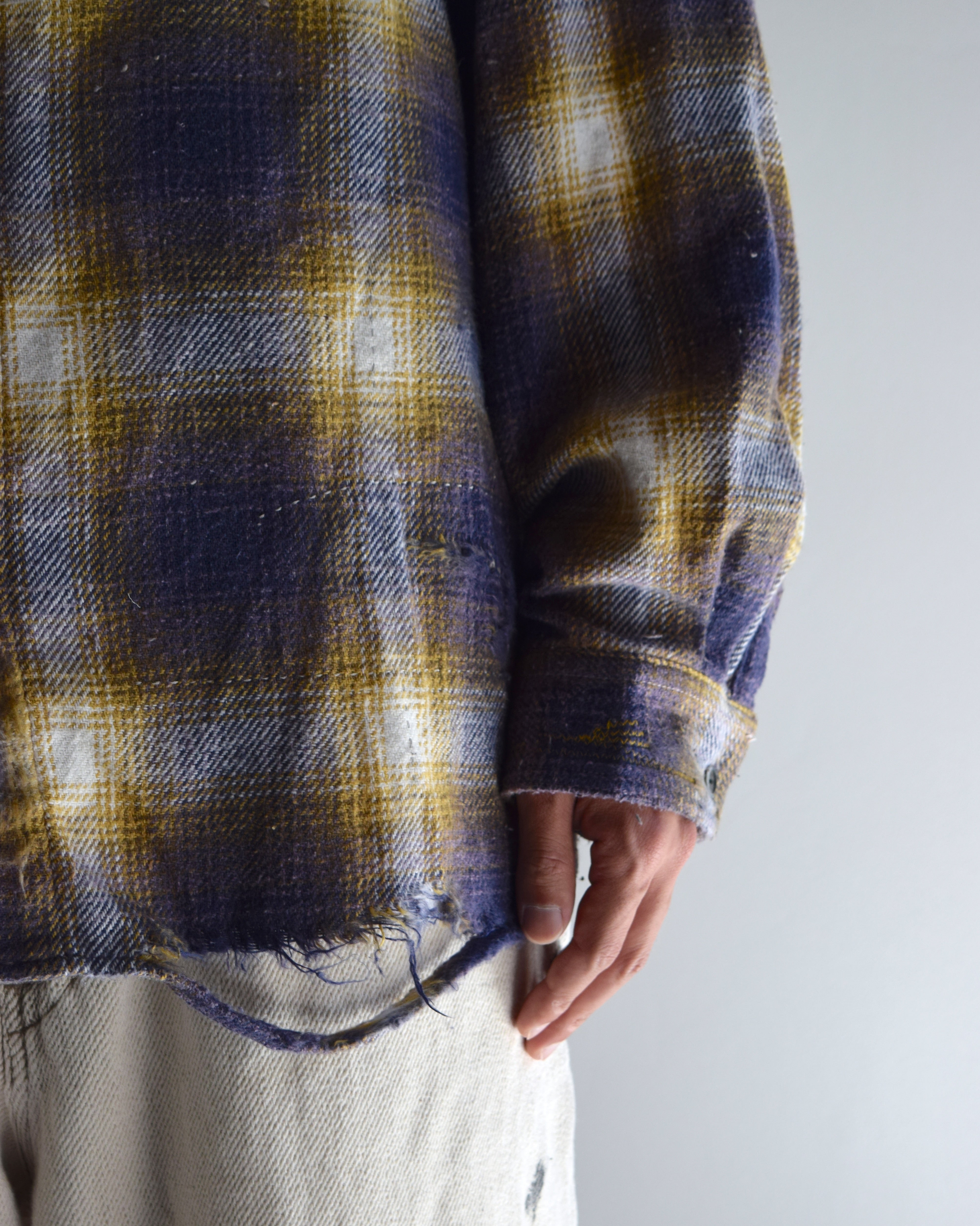 ANACHRONORM /OMBRE CHECK DAMAGED WIDE FLANNEL SHIRTS PURPLE×YELLOW [EXCLUSIVE COLOR]