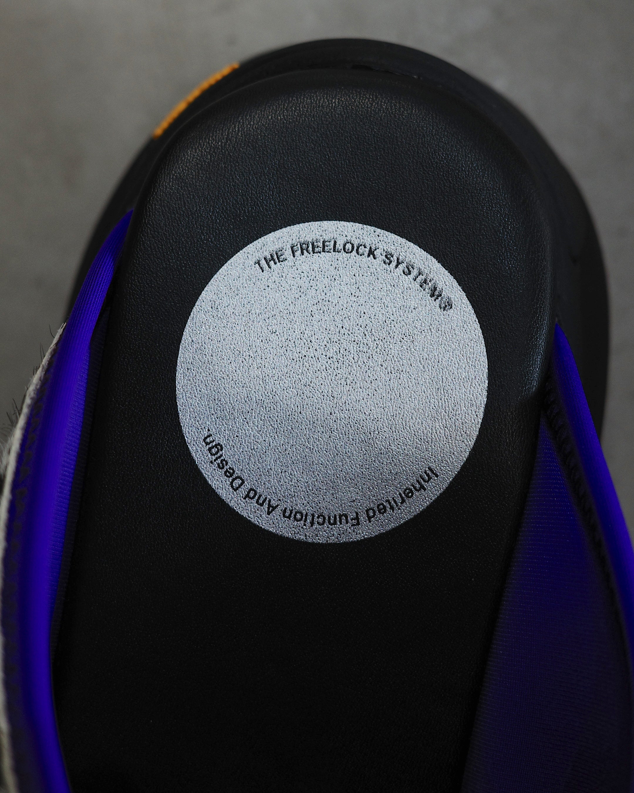 The outer layer is made of horsehair hide, featuring darts that allow for adjustment via the FREELOCK system. By tightening the sandals to fit your foot, wrinkles form in the darted areas, creating a unique look that is characteristic of this model.