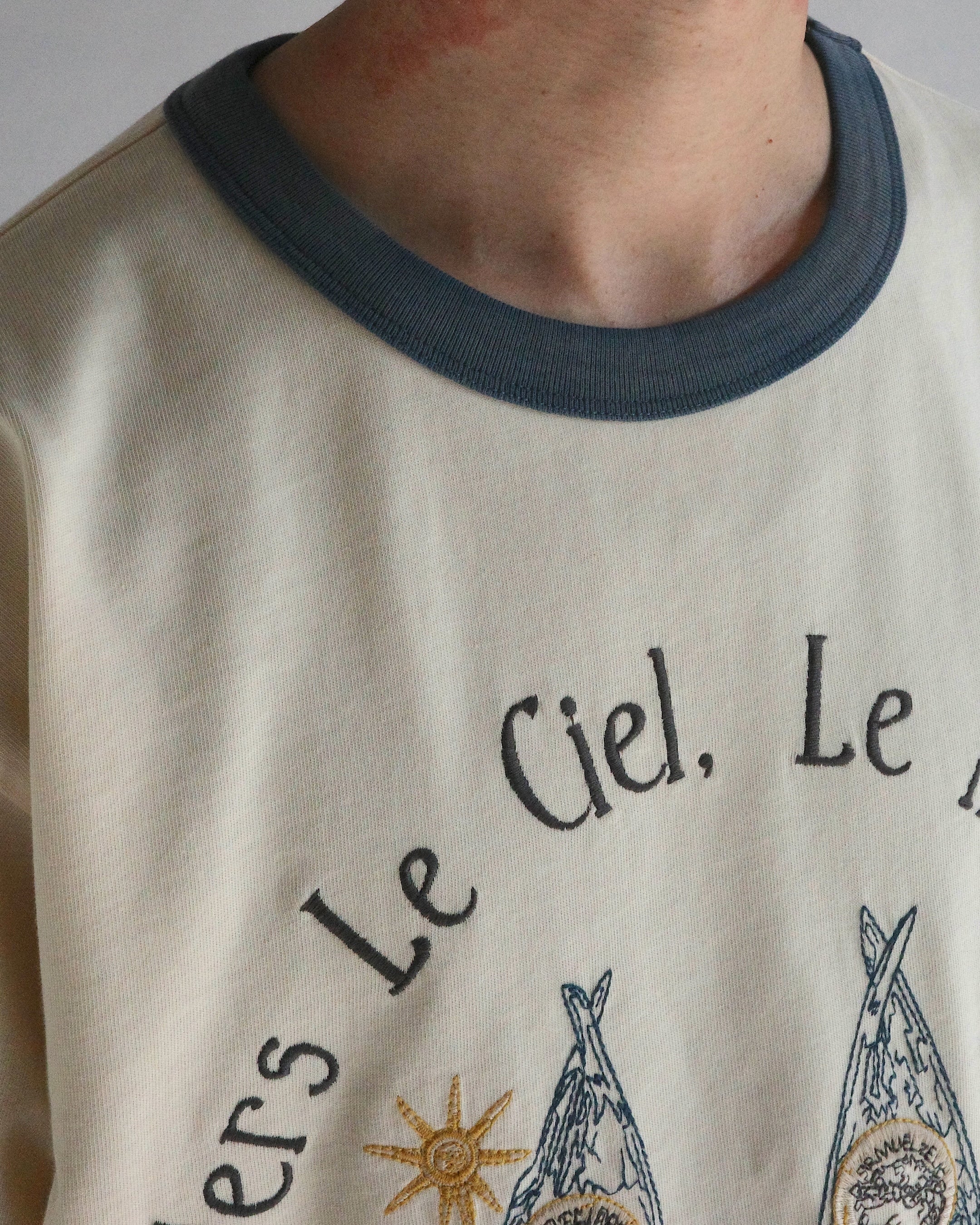 天体ロマン主義にインスパイアを受けた刺繍を施したTシャツ。