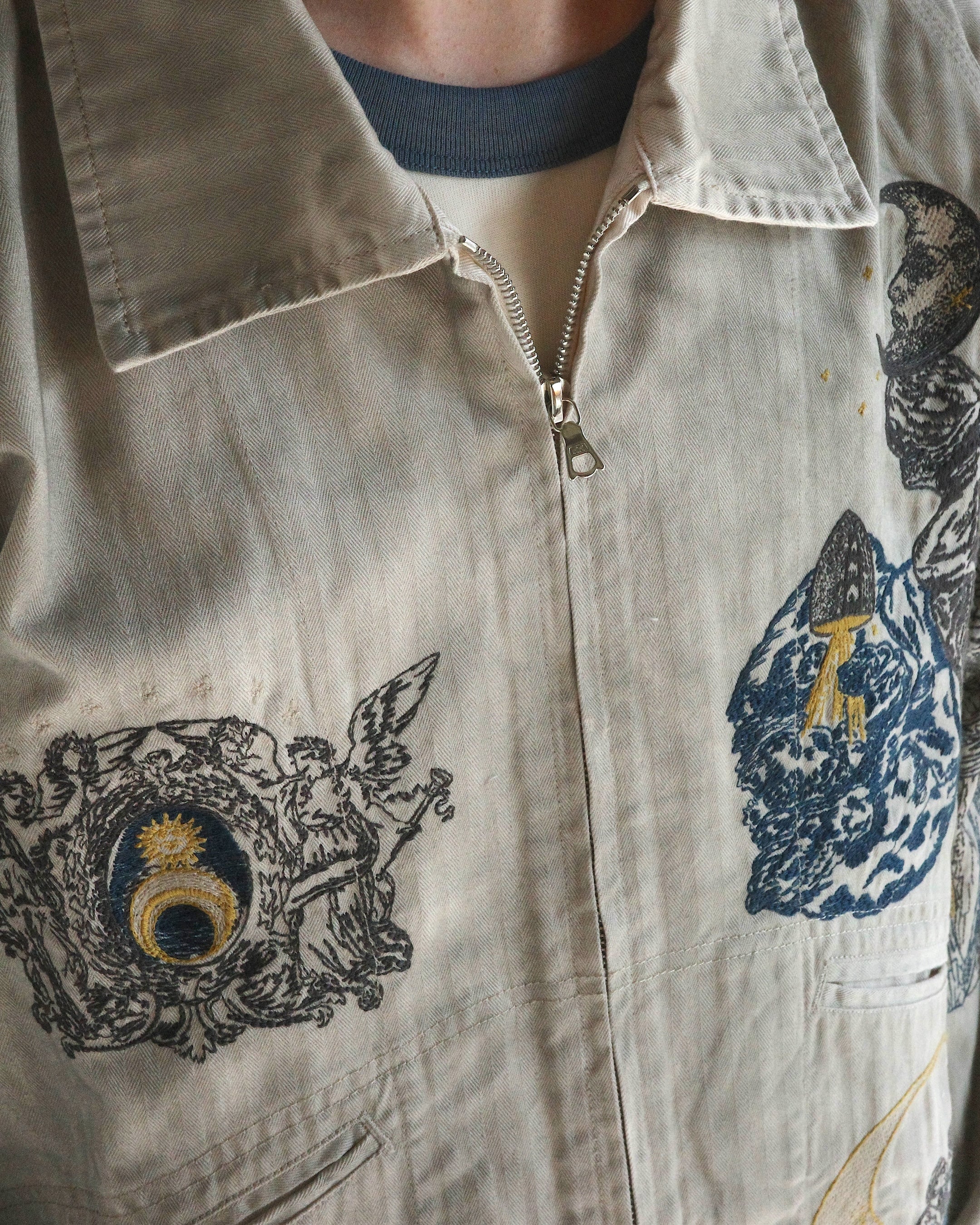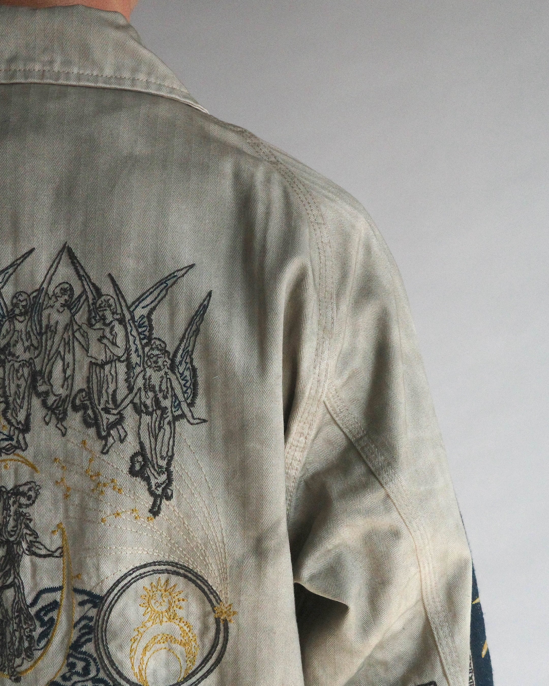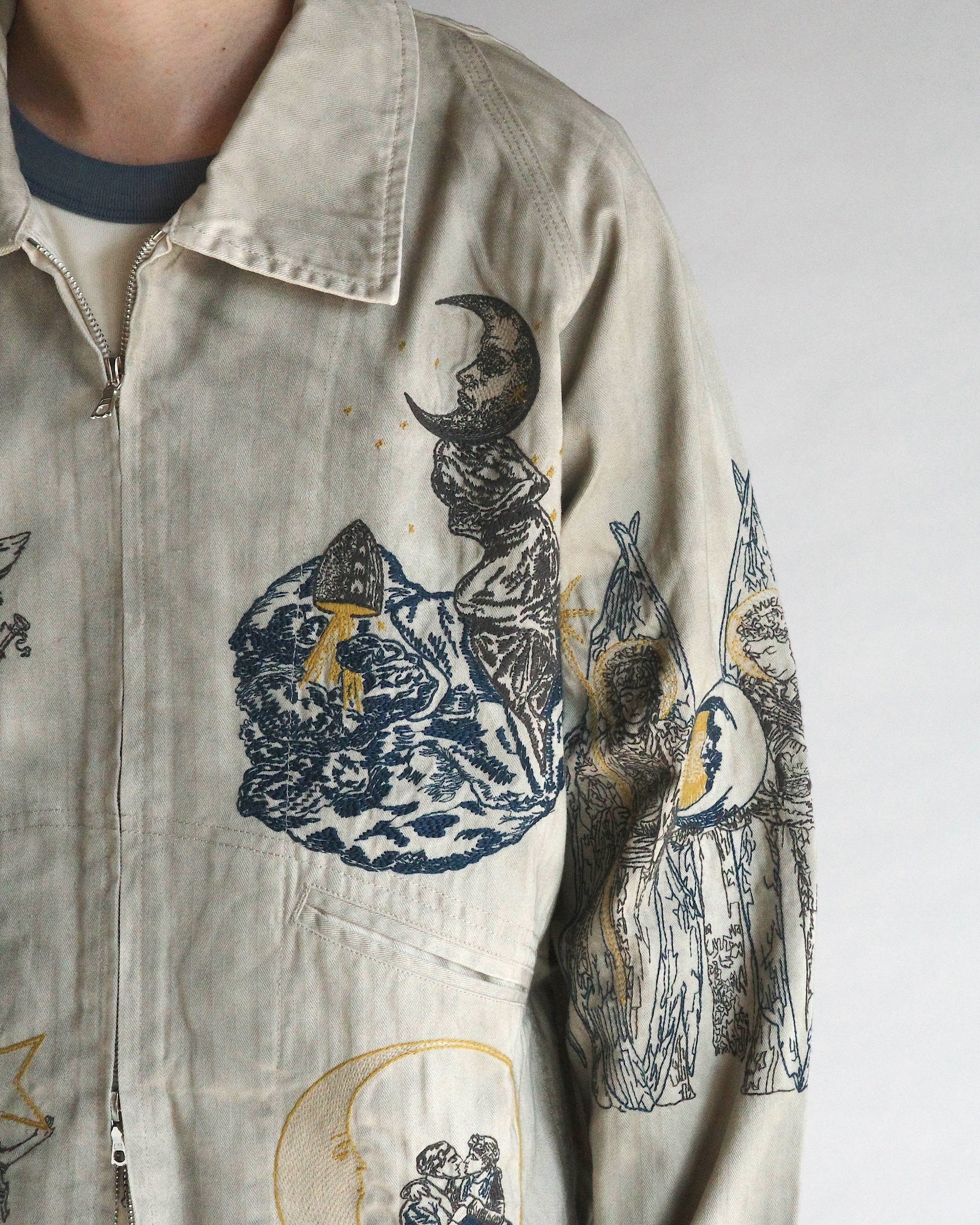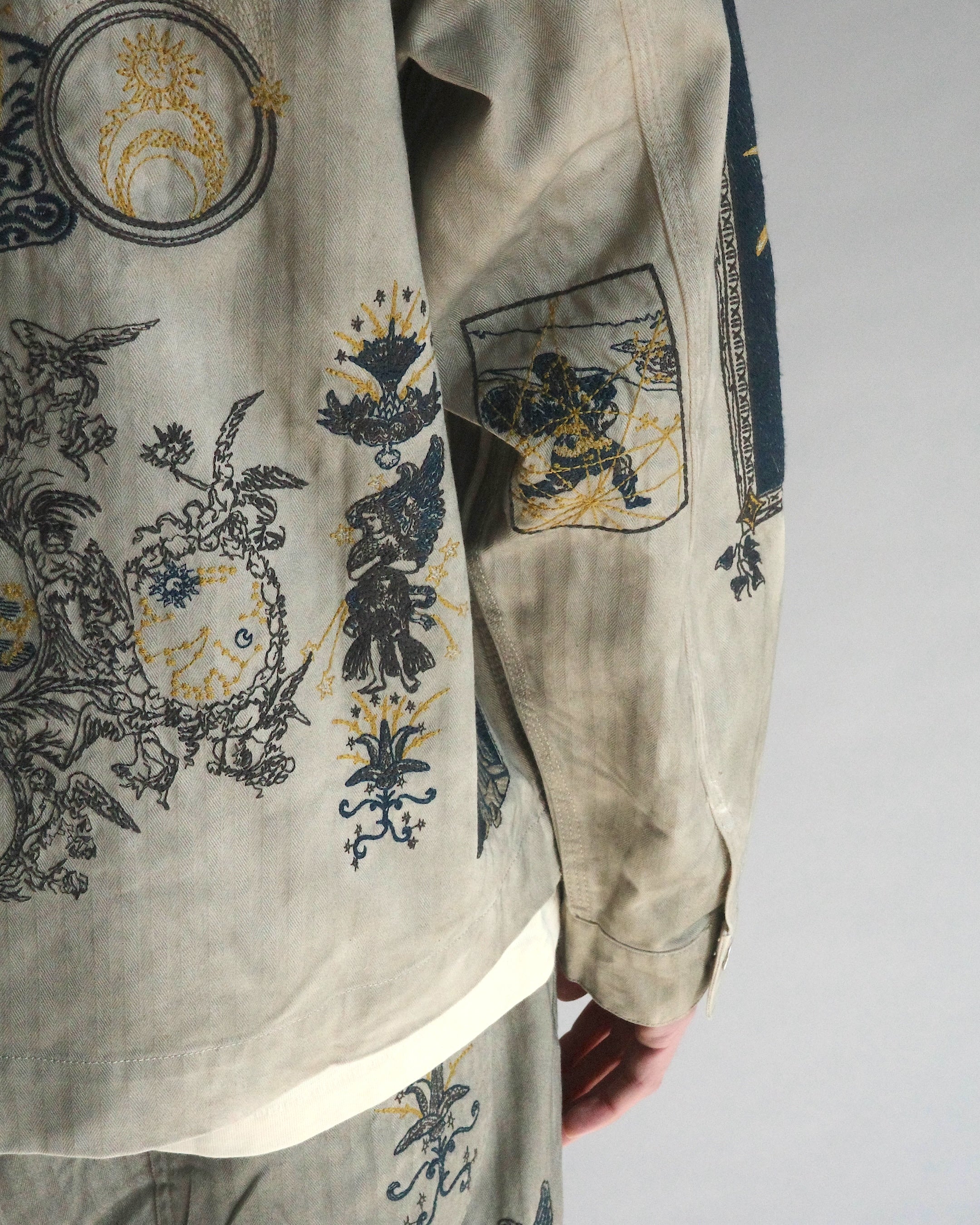 A Jacket embroidered with designs inspired by celestial romanticism.