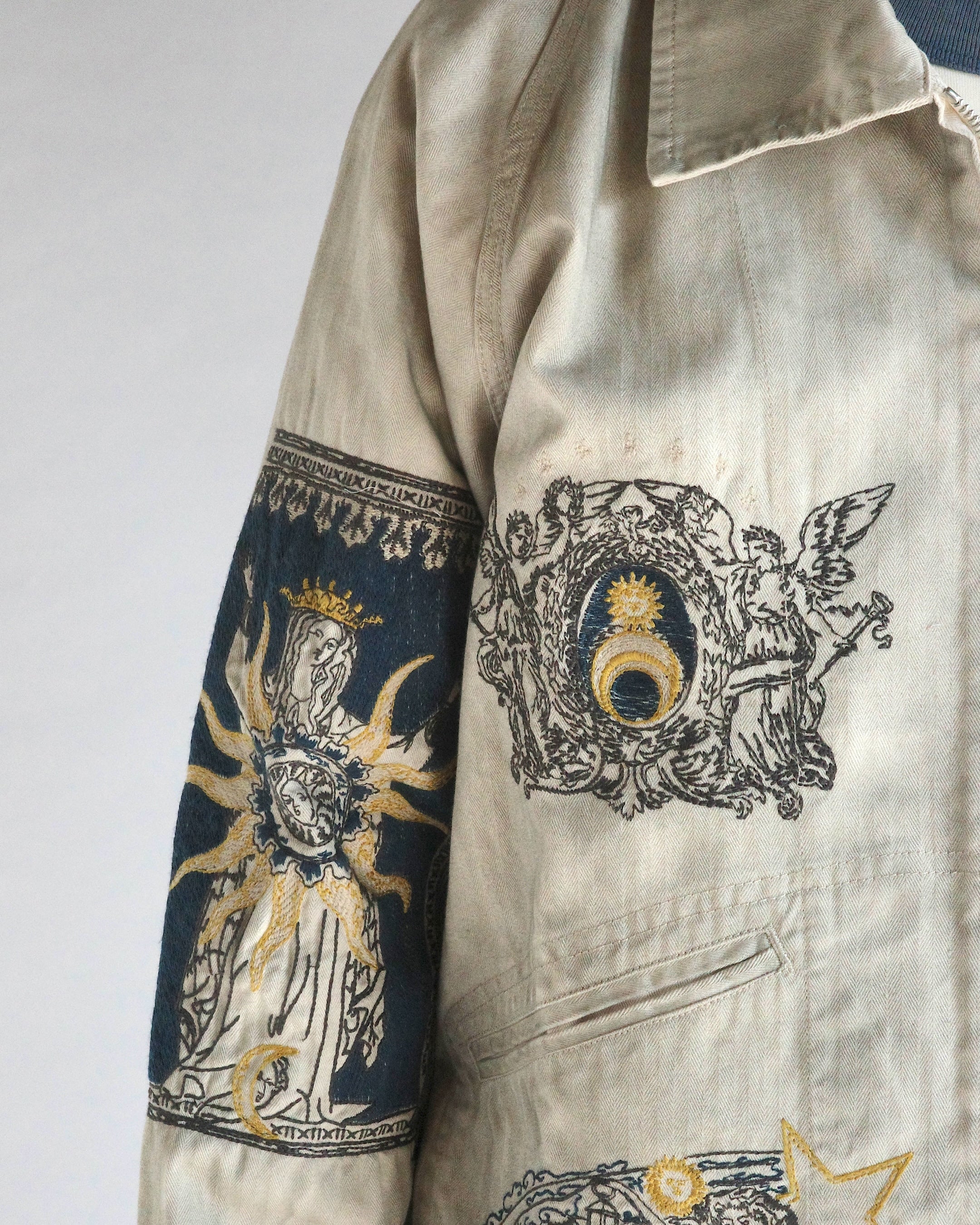天体ロマン主義にインスパイアを受けた刺繍を施したジャケット。